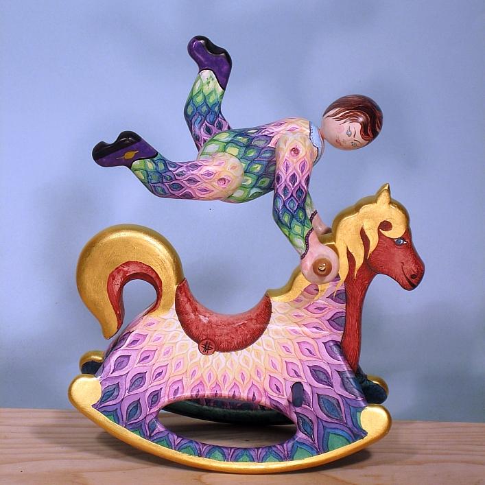 Giocattoli d'arte da collezione, realizzati con legni pregiati, dipinti ad acquerello variamente diluito e tampone con finiture in foglia d'oro 22Kt. Sono tutti pezzi unici, numerati e catalogati, forniti di certificato di produzione firmato dall'artista e sigillati con logo in cera lacca. Ideali per il collezionista, per un regalo di prestigio, per l'arredamento, opere rivolte a bambini e ragazzi come forma educativa per avvicinarli all'arte. Collectible art toys made of precious wood, painted with watercolor and swab with 22Kt gold leaf finishes. They are all unique pieces, numbered and cataloged, provided with a production certificate signed by the artist and sealed with lacquer wax logo. Ideal for the collector, for a prestigious gift, for furnishings, works directed at children and teens as an educational form to bring them closer to art.