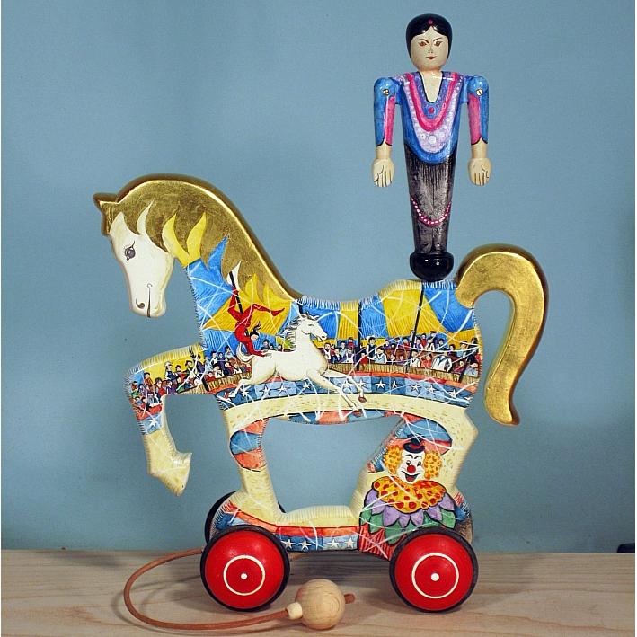 Giocattoli d'arte da collezione, realizzati con legni pregiati, dipinti ad acquerello variamente diluito e tampone con finiture in foglia d'oro 22Kt. Sono tutti pezzi unici, numerati e catalogati, forniti di certificato di produzione firmato dall'artista e sigillati con logo in cera lacca. Ideali per il collezionista, per un regalo di prestigio, per l'arredamento, opere rivolte a bambini e ragazzi come forma educativa per avvicinarli all'arte. Collectible art toys made of precious wood, painted with watercolor and swab with 22Kt gold leaf finishes. They are all unique pieces, numbered and cataloged, provided with a production certificate signed by the artist and sealed with lacquer wax logo. Ideal for the collector, for a prestigious gift, for furnishings, works directed at children and teens as an educational form to bring them closer to art.