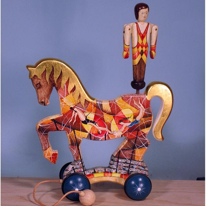 Giocattoli d'arte da collezione, realizzati con legni pregiati, dipinti ad acquerello variamente diluito e tampone con finiture in foglia d'oro 22Kt. Sono tutti pezzi unici, numerati e catalogati, forniti di certificato di produzione firmato dall'artista e sigillati con logo in cera lacca. Ideali per il collezionista, per un regalo di prestigio, per l'arredamento, opere rivolte a bambini e ragazzi come forma educativa per avvicinarli all'arte. Collectible art toys made of precious wood, painted with watercolor and swab with 22Kt gold leaf finishes. They are all unique pieces, numbered and cataloged, provided with a production certificate signed by the artist and sealed with lacquer wax logo. Ideal for the collector, for a prestigious gift, for furnishings, works directed at children and teens as an educational form to bring them closer to art.