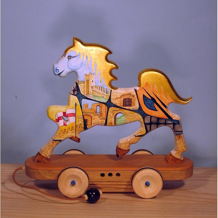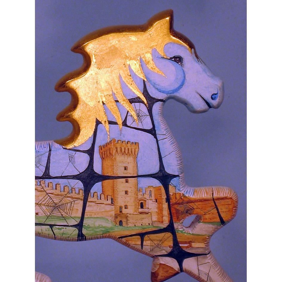 Giocattoli d'arte da collezione, realizzati con legni pregiati, dipinti ad acquerello variamente diluito e tampone con finiture in foglia d'oro 22Kt. Sono tutti pezzi unici, numerati e catalogati, forniti di certificato di produzione firmato dall'artista e sigillati con logo in cera lacca. Ideali per il collezionista, per un regalo di prestigio, per l'arredamento, opere rivolte a bambini e ragazzi come forma educativa per avvicinarli all'arte. Collectible art toys made of precious wood, painted with watercolor and swab with 22Kt gold leaf finishes. They are all unique pieces, numbered and cataloged, provided with a production certificate signed by the artist and sealed with lacquer wax logo. Ideal for the collector, for a prestigious gift, for furnishings, works directed at children and teens as an educational form to bring them closer to art.
