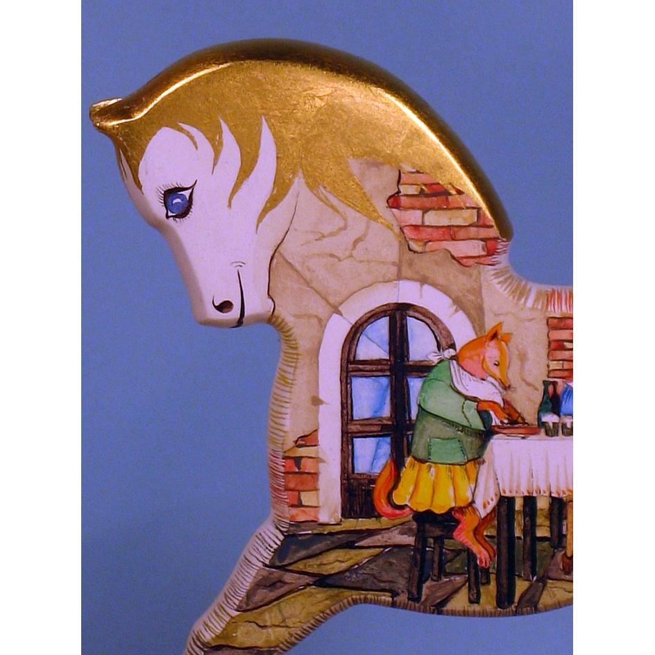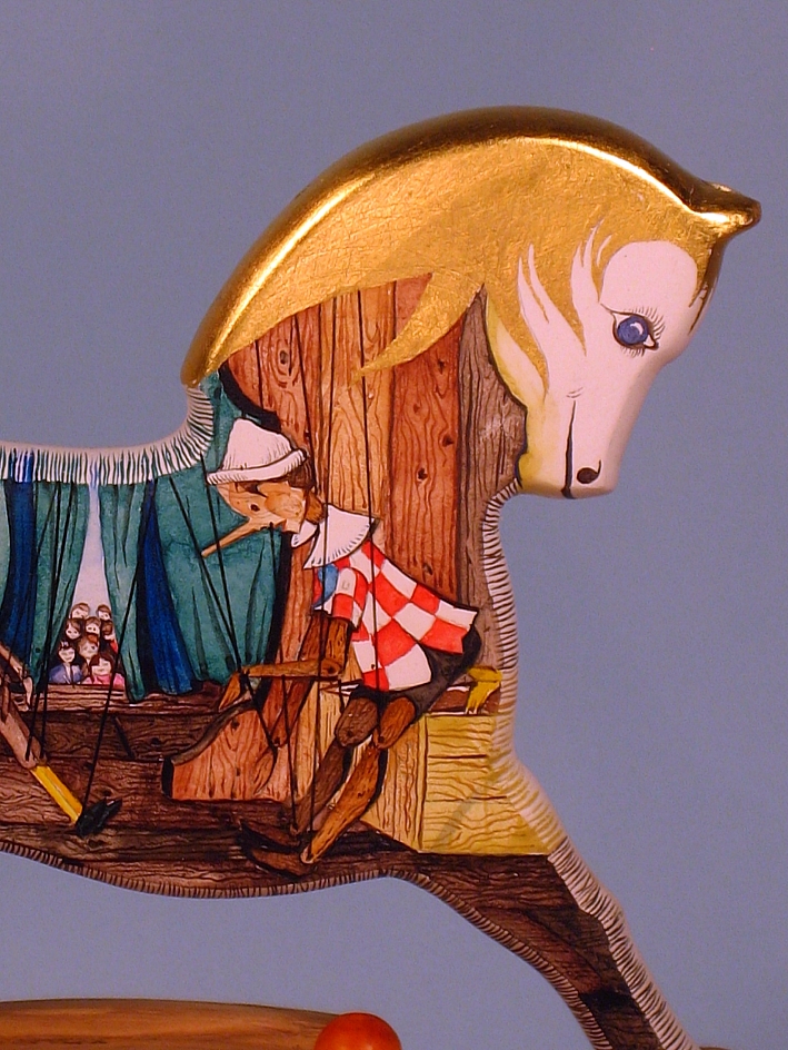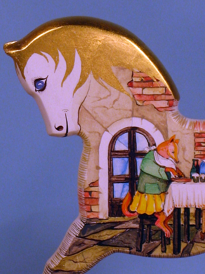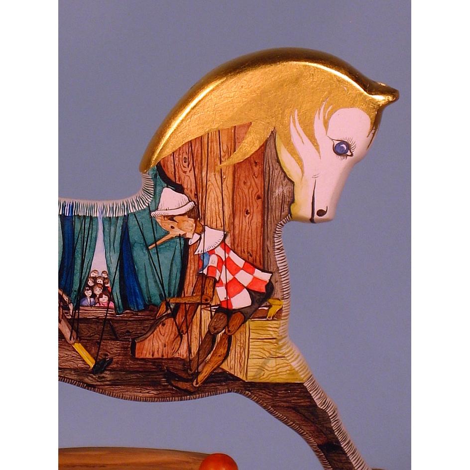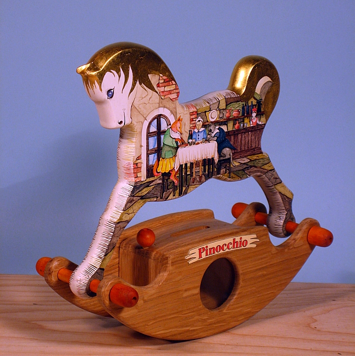 Giocattoli d'arte da collezione, realizzati con legni pregiati, dipinti ad acquerello variamente diluito e tampone con finiture in foglia d'oro 22Kt. Sono tutti pezzi unici, numerati e catalogati, forniti di certificato di produzione firmato dall'artista e sigillati con logo in cera lacca. Ideali per il collezionista, per un regalo di prestigio, per l'arredamento, opere rivolte a bambini e ragazzi come forma educativa per avvicinarli all'arte. Collectible art toys made of precious wood, painted with watercolor and swab with 22Kt gold leaf finishes. They are all unique pieces, numbered and cataloged, provided with a production certificate signed by the artist and sealed with lacquer wax logo. Ideal for the collector, for a prestigious gift, for furnishings, works directed at children and teens as an educational form to bring them closer to art.