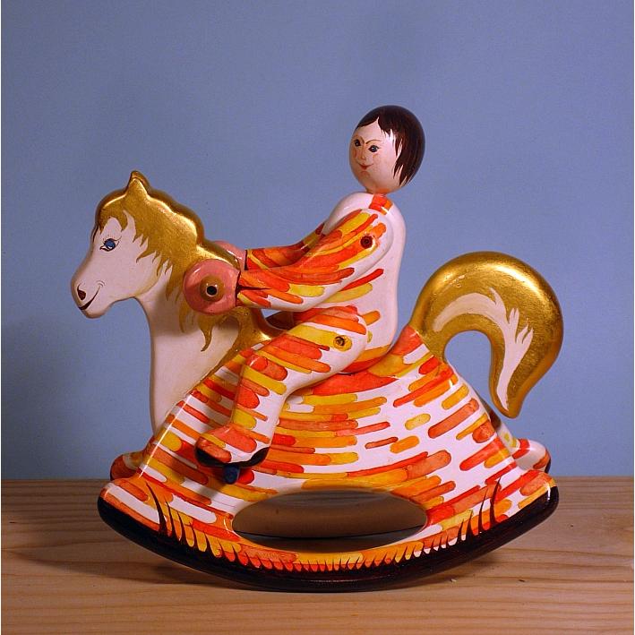 Giocattoli d'arte da collezione, realizzati con legni pregiati, dipinti ad acquerello variamente diluito e tampone con finiture in foglia d'oro 22Kt. Sono tutti pezzi unici, numerati e catalogati, forniti di certificato di produzione firmato dall'artista e sigillati con logo in cera lacca. Ideali per il collezionista, per un regalo di prestigio, per l'arredamento, opere rivolte a bambini e ragazzi come forma educativa per avvicinarli all'arte. Collectible art toys made of precious wood, painted with watercolor and swab with 22Kt gold leaf finishes. They are all unique pieces, numbered and cataloged, provided with a production certificate signed by the artist and sealed with lacquer wax logo. Ideal for the collector, for a prestigious gift, for furnishings, works directed at children and teens as an educational form to bring them closer to art.