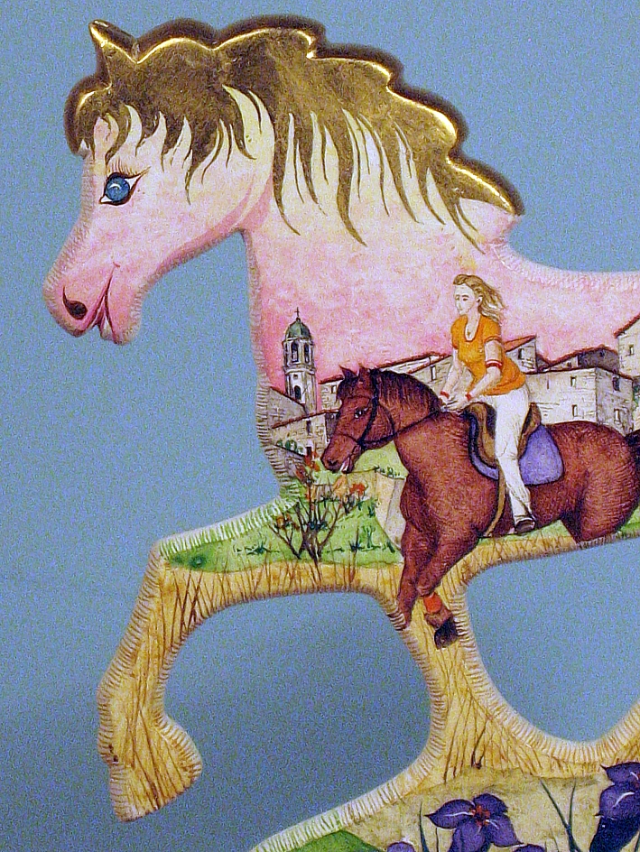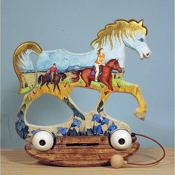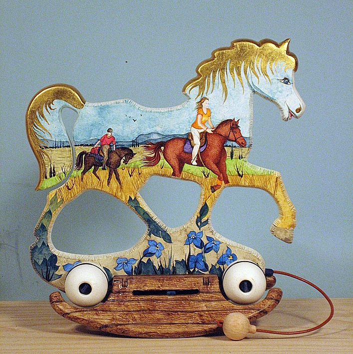 Giocattoli d'arte da collezione, realizzati con legni pregiati, dipinti ad acquerello variamente diluito e tampone con finiture in foglia d'oro 22Kt. Sono tutti pezzi unici, numerati e catalogati, forniti di certificato di produzione firmato dall'artista e sigillati con logo in cera lacca. Ideali per il collezionista, per un regalo di prestigio, per l'arredamento, opere rivolte a bambini e ragazzi come forma educativa per avvicinarli all'arte. Collectible art toys made of precious wood, painted with watercolor and swab with 22Kt gold leaf finishes. They are all unique pieces, numbered and cataloged, provided with a production certificate signed by the artist and sealed with lacquer wax logo. Ideal for the collector, for a prestigious gift, for furnishings, works directed at children and teens as an educational form to bring them closer to art.