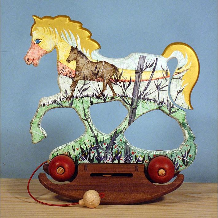 Giocattoli d'arte da collezione, realizzati con legni pregiati, dipinti ad acquerello variamente diluito e tampone con finiture in foglia d'oro 22Kt. Sono tutti pezzi unici, numerati e catalogati, forniti di certificato di produzione firmato dall'artista e sigillati con logo in cera lacca. Ideali per il collezionista, per un regalo di prestigio, per l'arredamento, opere rivolte a bambini e ragazzi come forma educativa per avvicinarli all'arte. Collectible art toys made of precious wood, painted with watercolor and swab with 22Kt gold leaf finishes. They are all unique pieces, numbered and cataloged, provided with a production certificate signed by the artist and sealed with lacquer wax logo. Ideal for the collector, for a prestigious gift, for furnishings, works directed at children and teens as an educational form to bring them closer to art.