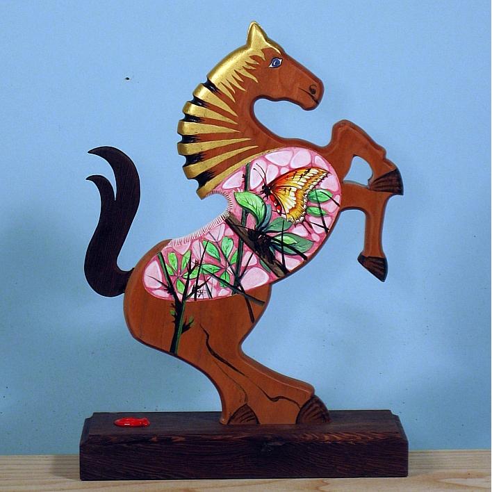 Giocattoli d'arte da collezione, realizzati con legni pregiati, dipinti ad acquerello variamente diluito e tampone con finiture in foglia d'oro 22Kt. Sono tutti pezzi unici, numerati e catalogati, forniti di certificato di produzione firmato dall'artista e sigillati con logo in cera lacca. Ideali per il collezionista, per un regalo di prestigio, per l'arredamento, opere rivolte a bambini e ragazzi come forma educativa per avvicinarli all'arte. Collectible art toys made of precious wood, painted with watercolor and swab with 22Kt gold leaf finishes. They are all unique pieces, numbered and cataloged, provided with a production certificate signed by the artist and sealed with lacquer wax logo. Ideal for the collector, for a prestigious gift, for furnishings, works directed at children and teens as an educational form to bring them closer to art.