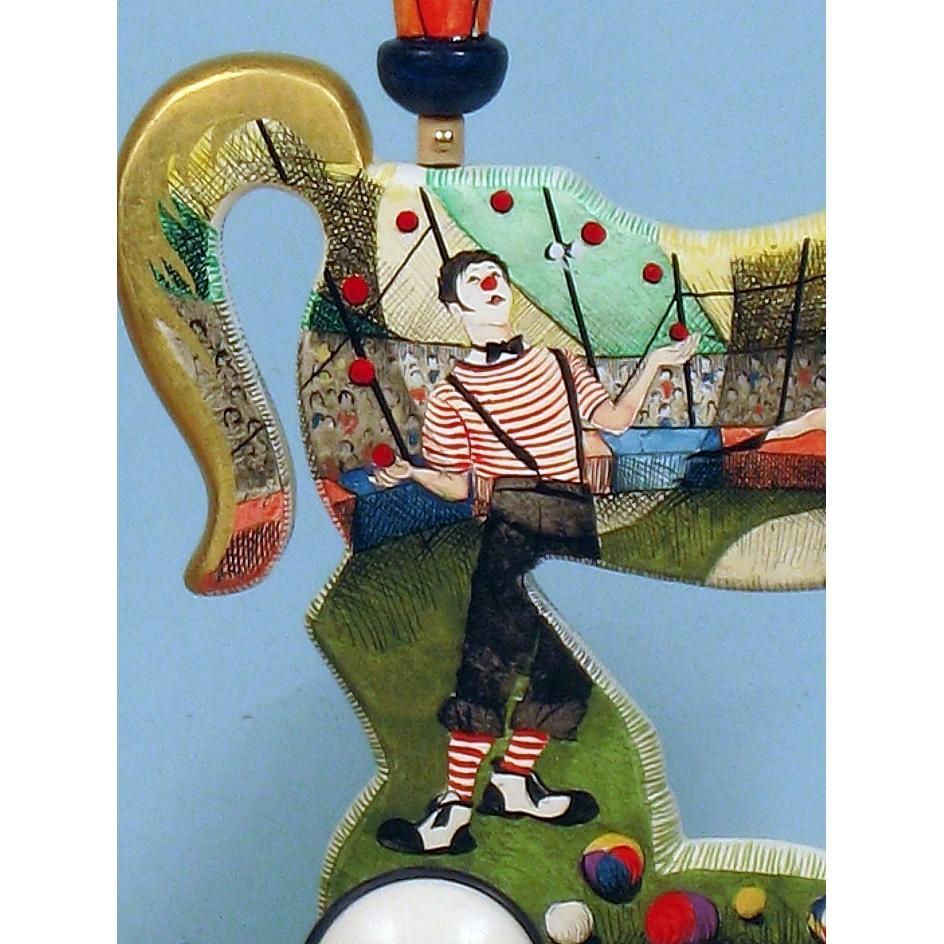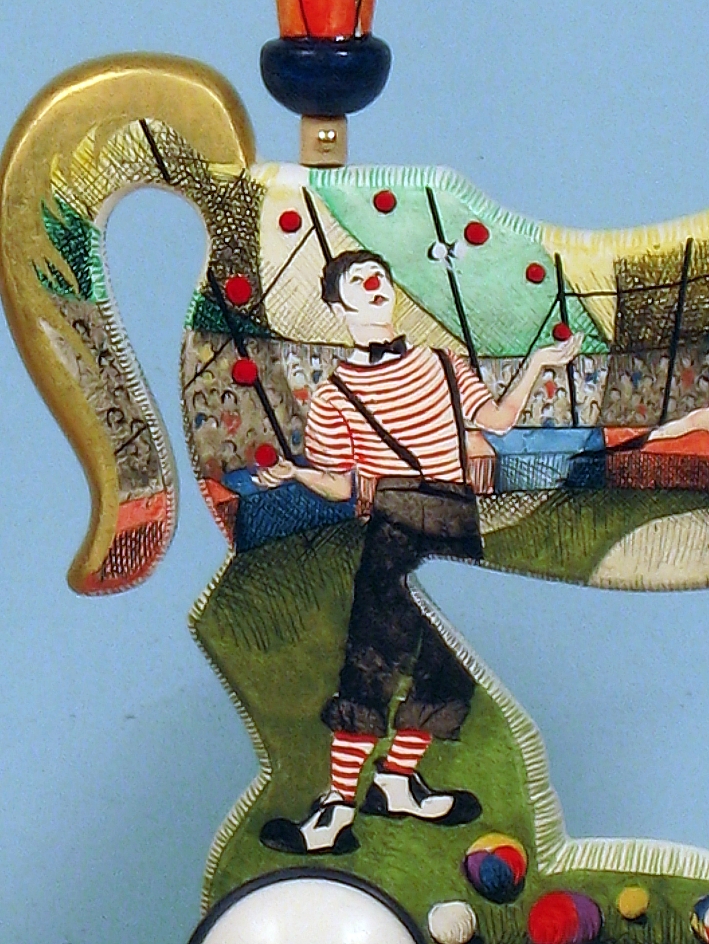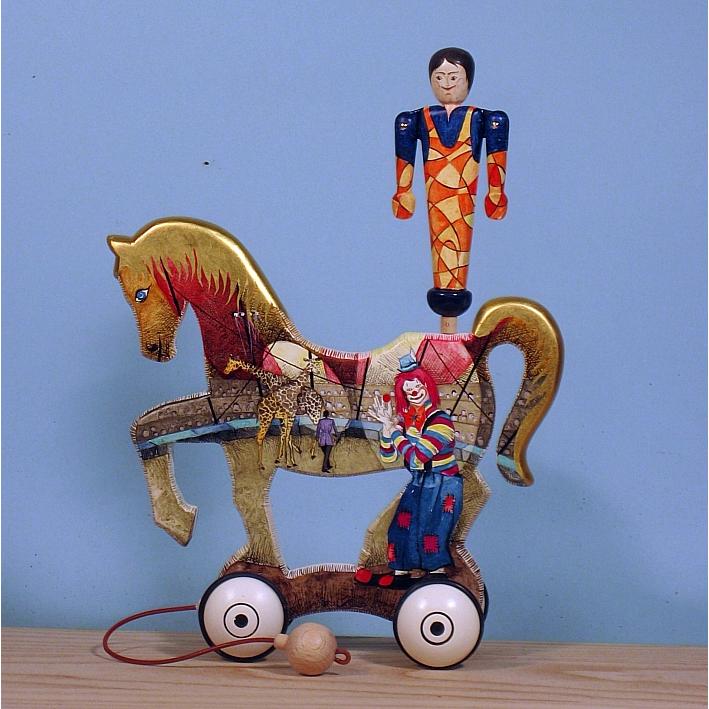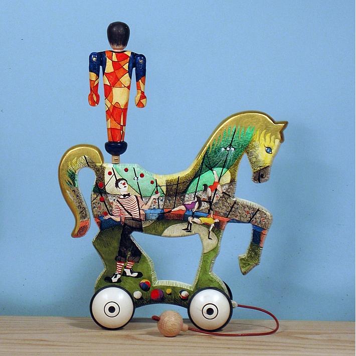 Giocattoli d'arte da collezione, realizzati con legni pregiati, dipinti ad acquerello variamente diluito e tampone con finiture in foglia d'oro 22Kt. Sono tutti pezzi unici, numerati e catalogati, forniti di certificato di produzione firmato dall'artista e sigillati con logo in cera lacca. Ideali per il collezionista, per un regalo di prestigio, per l'arredamento, opere rivolte a bambini e ragazzi come forma educativa per avvicinarli all'arte. Collectible art toys made of precious wood, painted with watercolor and swab with 22Kt gold leaf finishes. They are all unique pieces, numbered and cataloged, provided with a production certificate signed by the artist and sealed with lacquer wax logo. Ideal for the collector, for a prestigious gift, for furnishings, works directed at children and teens as an educational form to bring them closer to art.