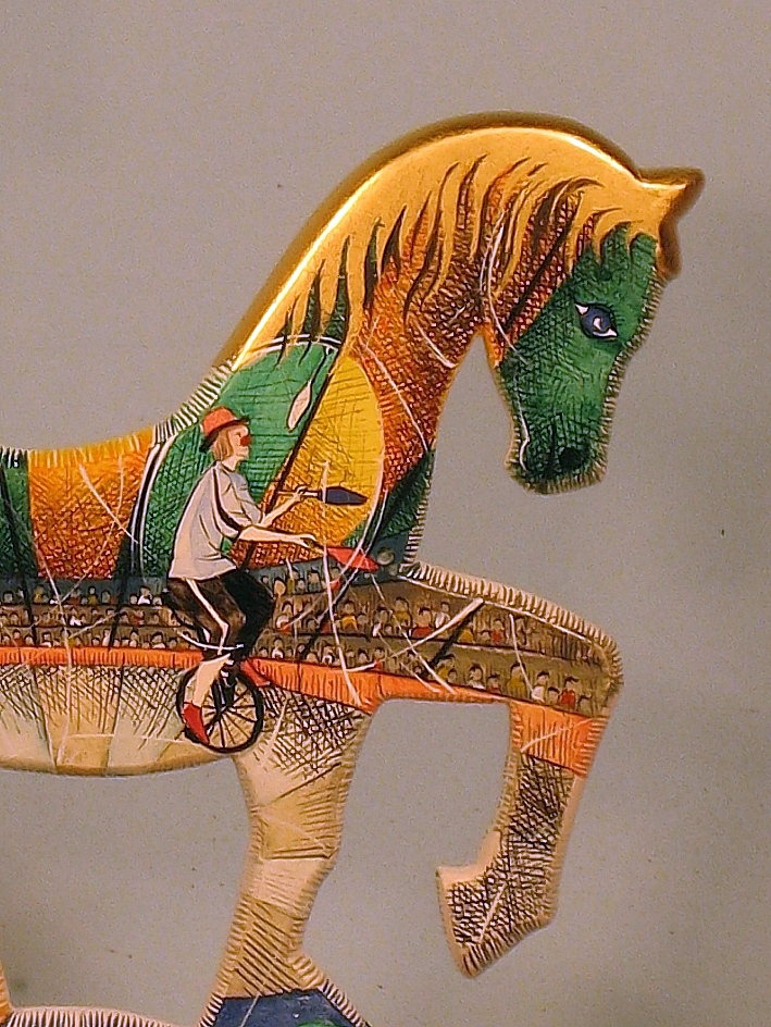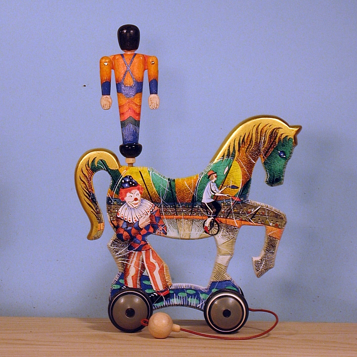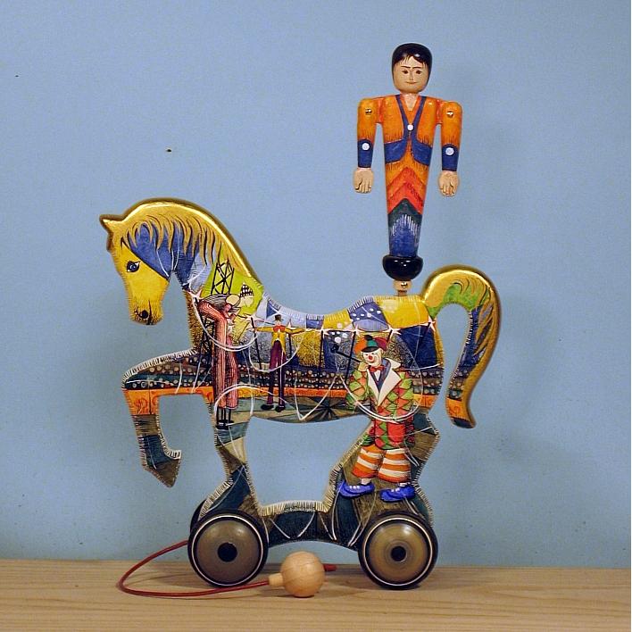 Giocattoli d'arte da collezione, realizzati con legni pregiati, dipinti ad acquerello variamente diluito e tampone con finiture in foglia d'oro 22Kt. Sono tutti pezzi unici, numerati e catalogati, forniti di certificato di produzione firmato dall'artista e sigillati con logo in cera lacca. Ideali per il collezionista, per un regalo di prestigio, per l'arredamento, opere rivolte a bambini e ragazzi come forma educativa per avvicinarli all'arte. Collectible art toys made of precious wood, painted with watercolor and swab with 22Kt gold leaf finishes. They are all unique pieces, numbered and cataloged, provided with a production certificate signed by the artist and sealed with lacquer wax logo. Ideal for the collector, for a prestigious gift, for furnishings, works directed at children and teens as an educational form to bring them closer to art.