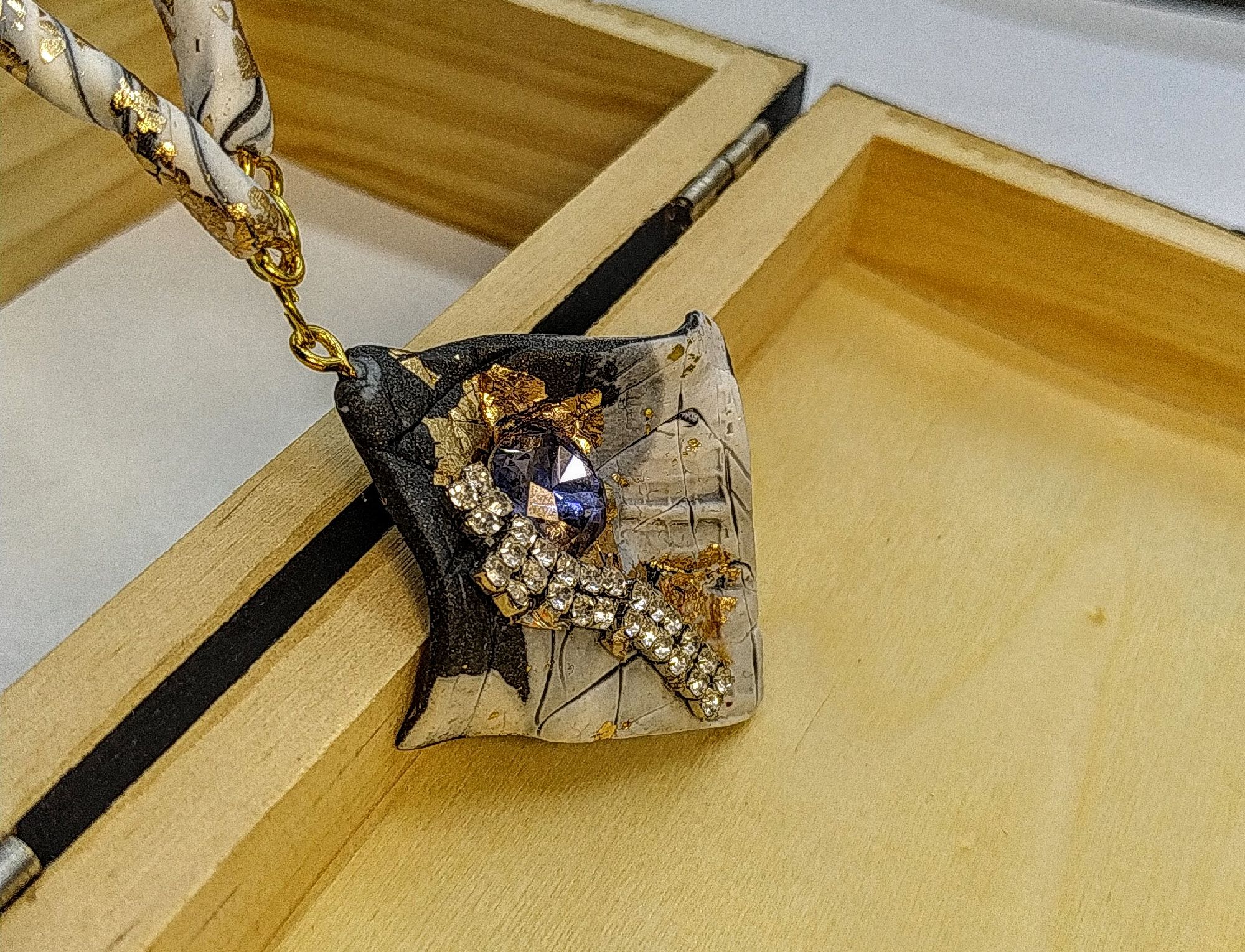 - Supporto: Argilla polimerica, tanzanite, foglia d'oro 18K