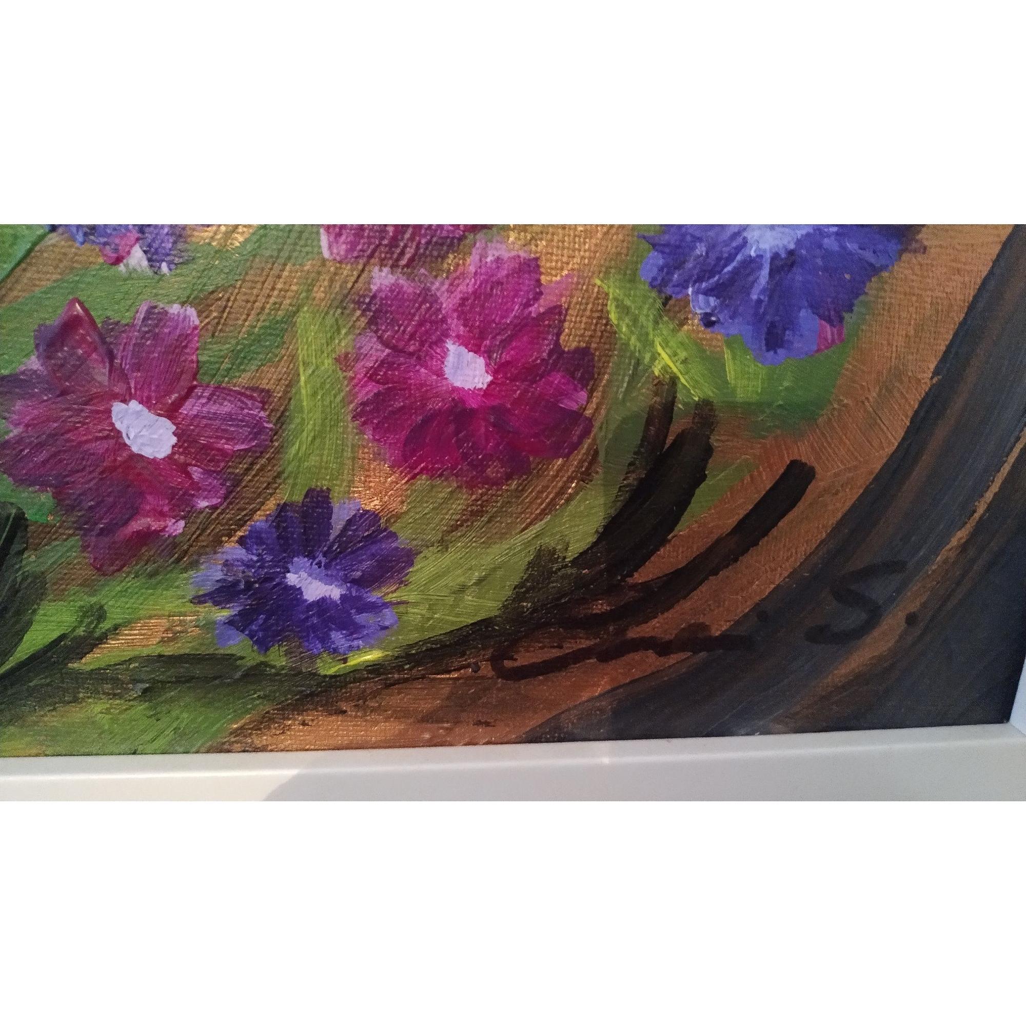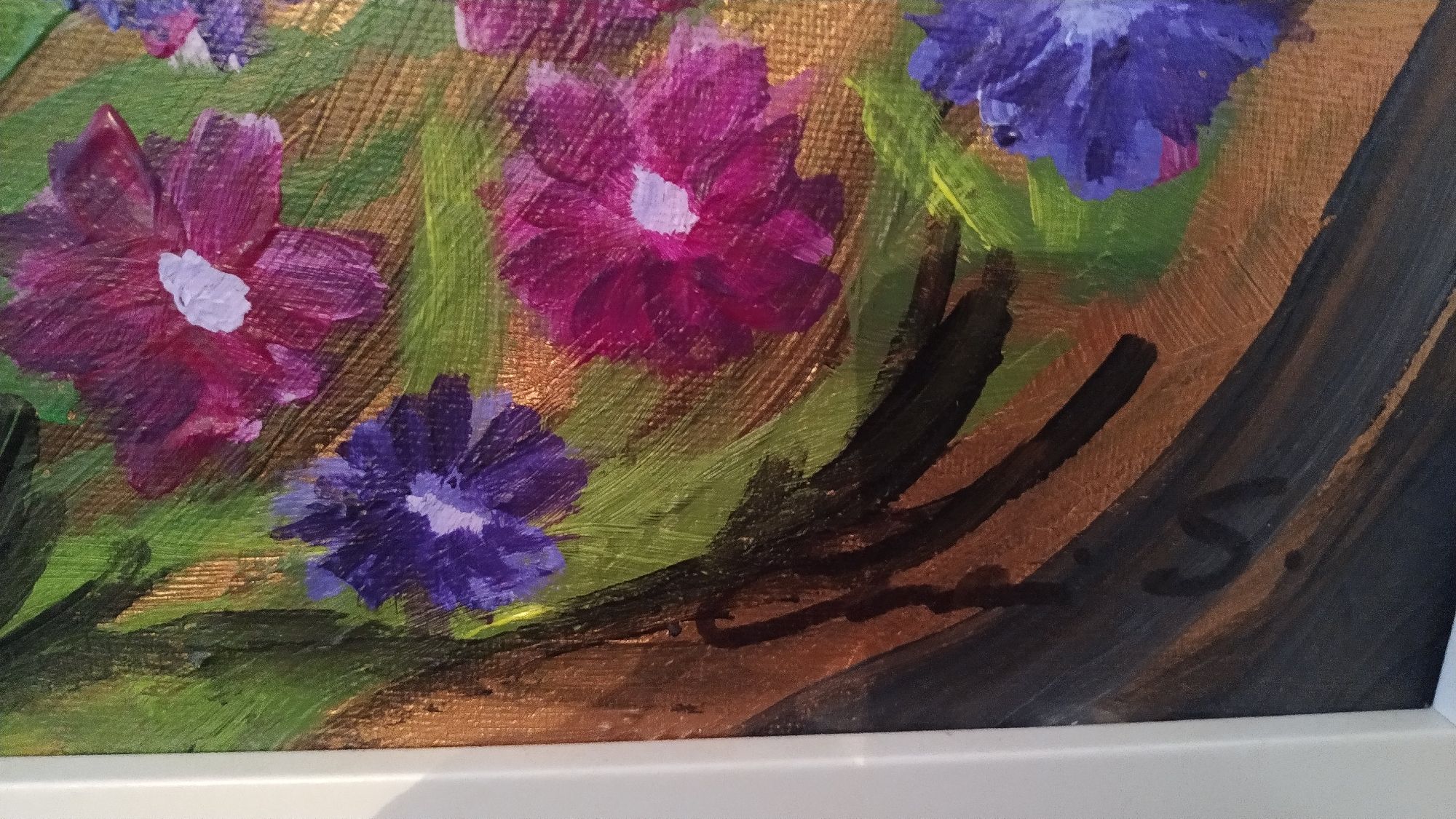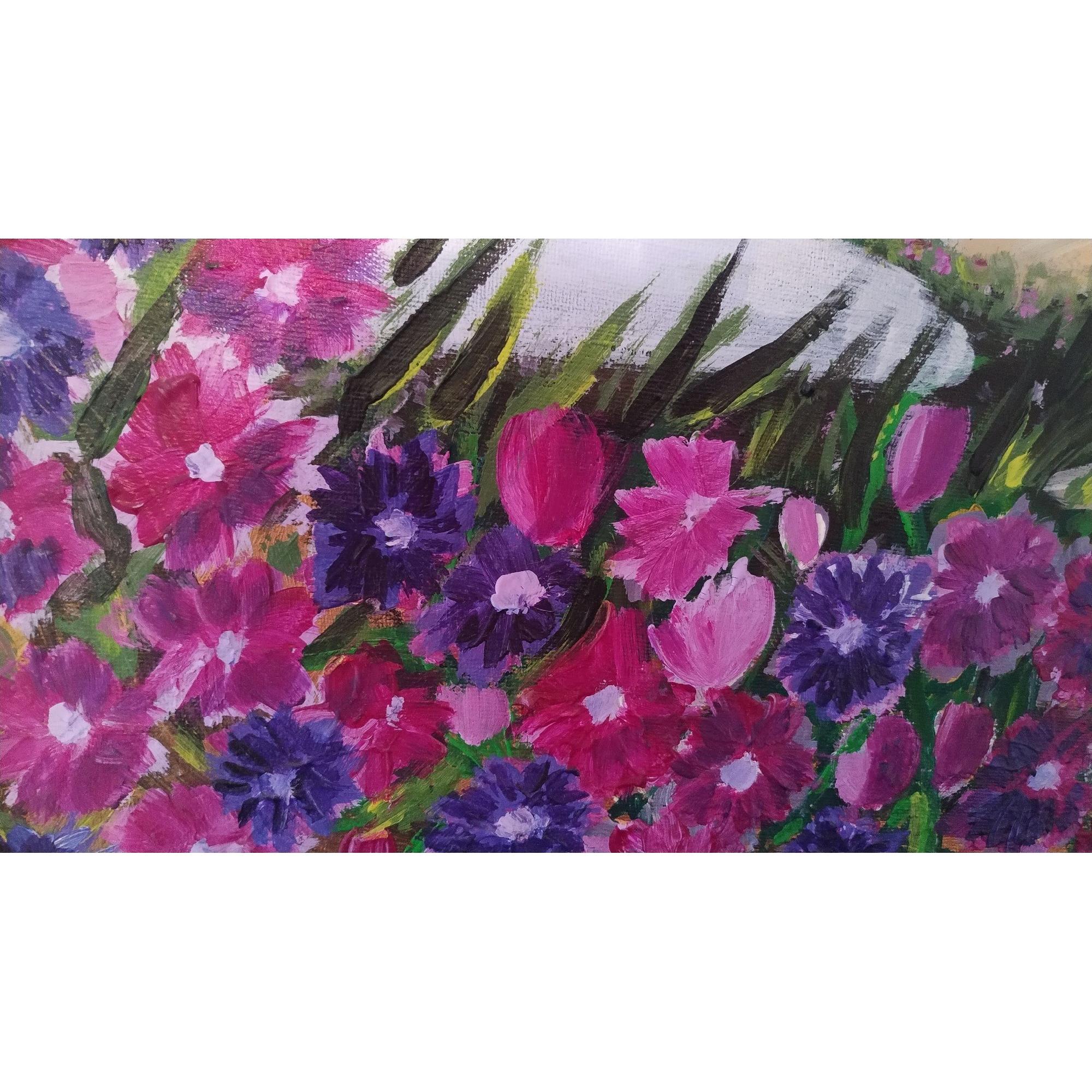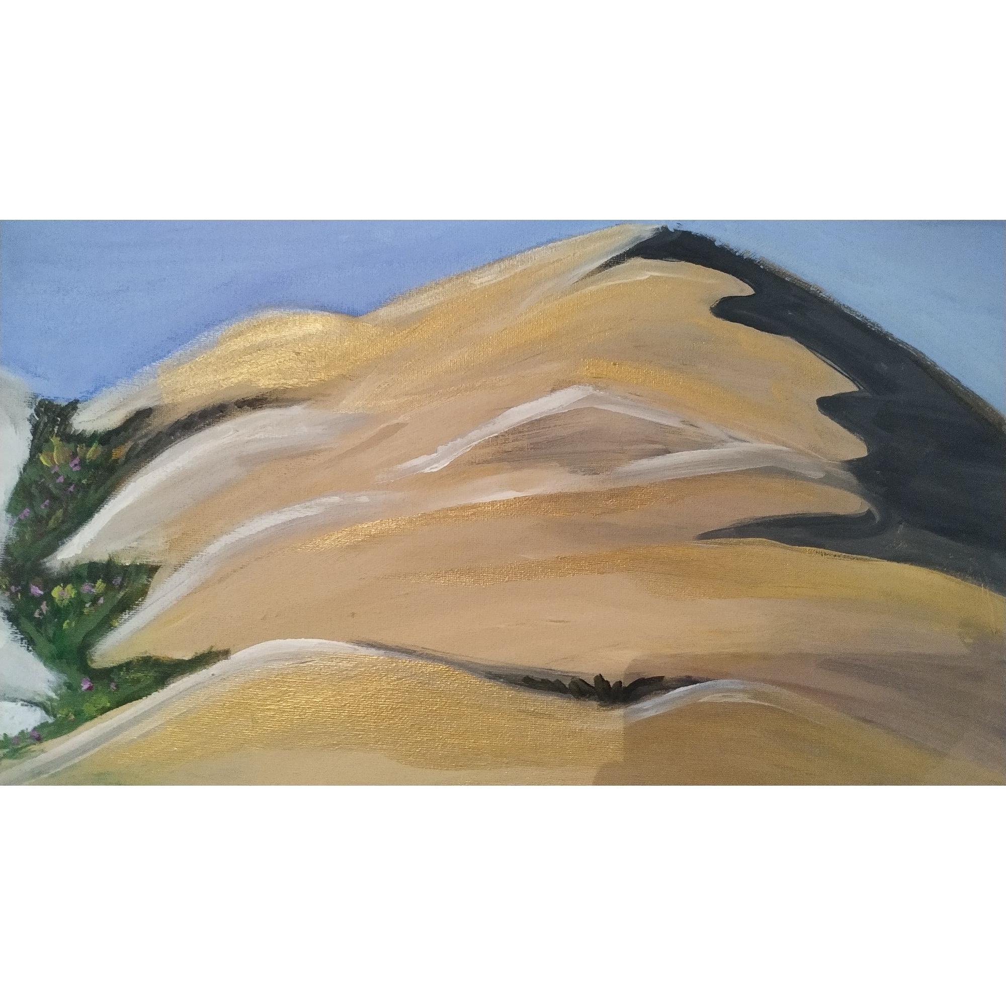 La forza della natura, il dipinto rappresenta la forza della vita e della natura nonostante il clima con temperature estreme.Un ghiacciaio a sinistra e le dune del deserto a destra, da ere glaciali a desertificazioni la vita nasce lo stesso attraverso fiori viola e fucsia. Niente puo' fermare la vita e la bellezza della natura attraverso la fioritura di fiori e piante.