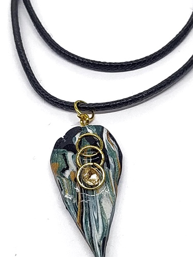- Supporto: Argilla polimerica, foglia d'oro, strass Swaroski