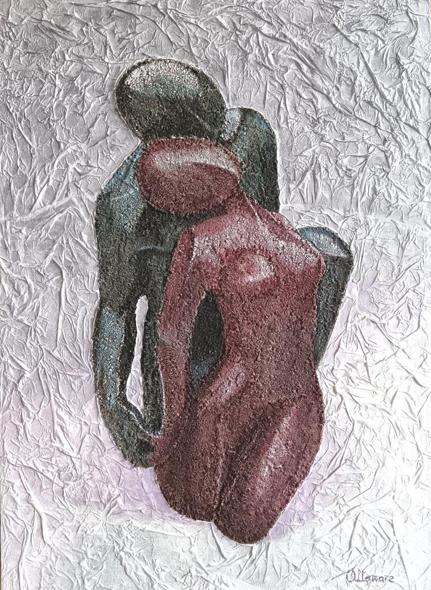 Rappresentadue innamorati che vivono il loro solido amore in modo quasi celestiale,infatti sono circondati da una luce ovattata che li isola dal resto del mondo.