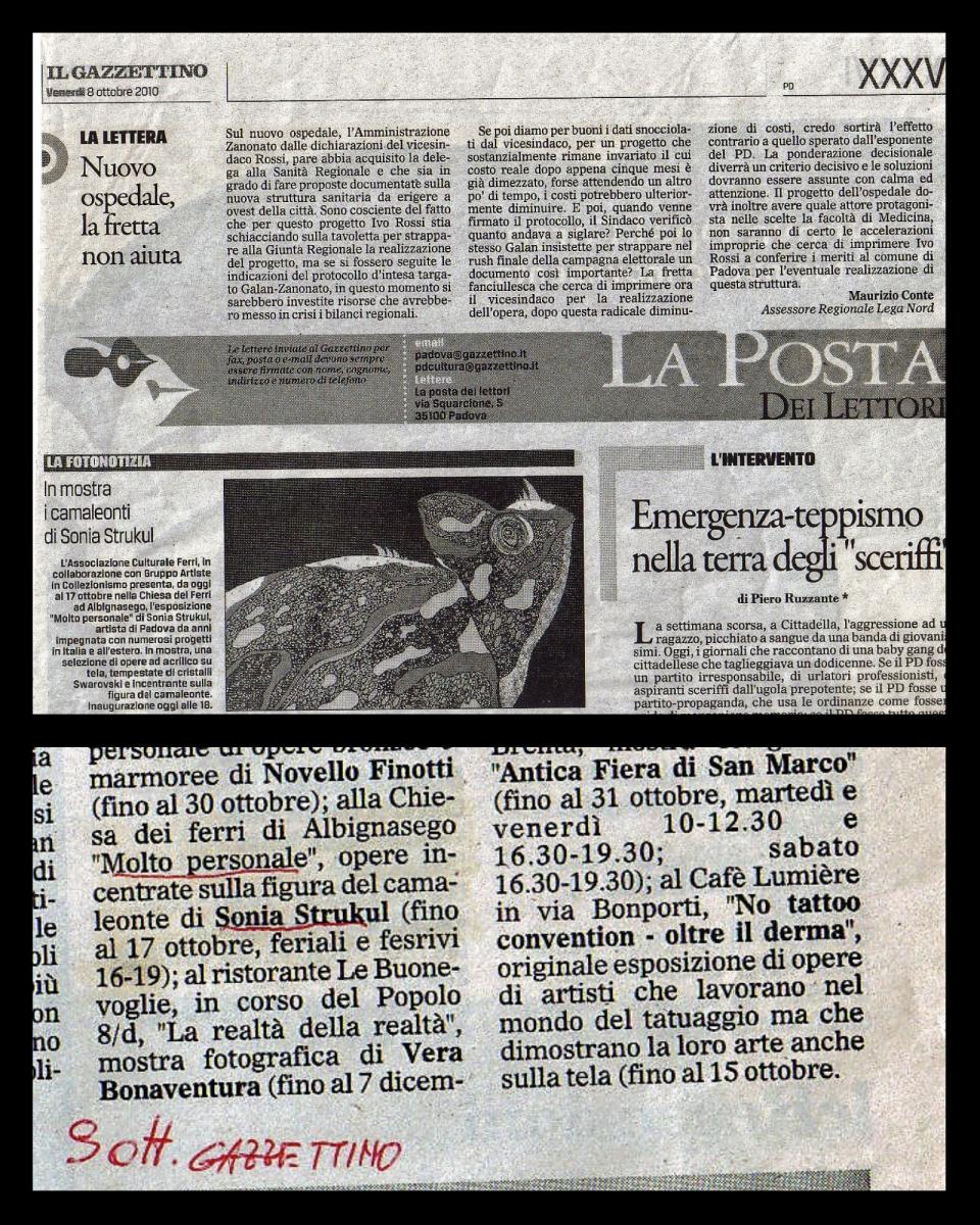 Recensioni sui quotidiani sulla mostra MOLTO PERSONALE alla Chiesa dei Ferri Albignasego (PD) nel 2010