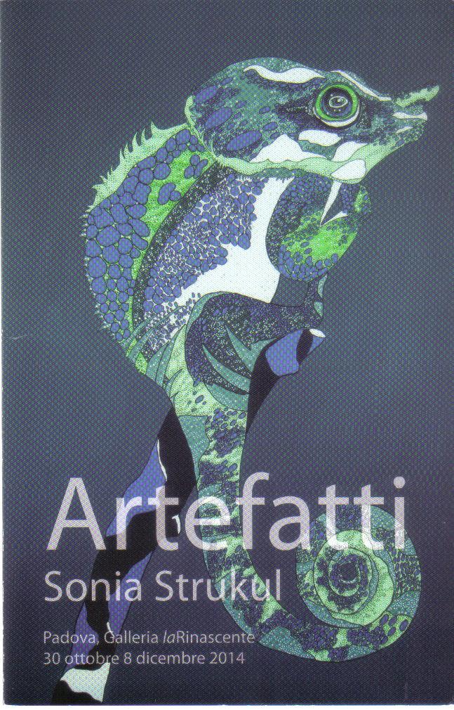 S’intitola “Artefatti” la mostra personale della pittrice Sonia Strukul, che sarà inaugurata mercoledì 29 ottobre 2014, alle ore 18.00, in Galleria laRinascente a Padova (Piazza Garibaldi). Promossa dal Comune di Padova (Assessorato Cultura e Turismo), in collaborazione con Padova Nursery of Arts, l’esposizione è curata da Gabriele Romeo, critico e storico dell’arte. La sua pittura - afferma il curatore - si propone di decorare uno spazio, non cercando compromissioni con l'inquietudine contemporanea. I suoi lavori sono “artefatti” di un tempo presente, di una memoria storica che cede il passo alla “mimesi trasformista” propria della società contemporanea. La sua pelle svuota il silicone mediatico della bellezza, per mostrarci forme impreziosite da diversi media tecnici. Sicuramente la sua abilità e conoscenza sulla tecnica del mosaico, la porta a sviluppare superfici con cristalli, che sembrano rievocare il divisionismo seuratiano, o porzioni di campiture nette che si scandiscono “à plat”, così da generare linee grafiche che chiamano alla nostra attenzione i lavori grafici di M.C. Escher o quelli musivi di Jerry W. Carter. Anche i suoi riferimenti con l’oriente non sono da meno ed ecco che, in “Fenicotteri” (1991), troviamo una corrispondenza con la pittura a soggetti animalisti di Utagawa Hiroshige […]. I paesaggi strukuliani vengono immersi in una dimensione onirica, eliminando volutamente qualsivoglia riferimento umano. […] Un tratto segnico febbrile che non si stanca di creare un dialogo evolutivo tra il “sogno”, la “realtà” e il “genere (soggetto) pittorico”. La sua arte è un’osservazione microscopica ed ossessiva per la natura neofita