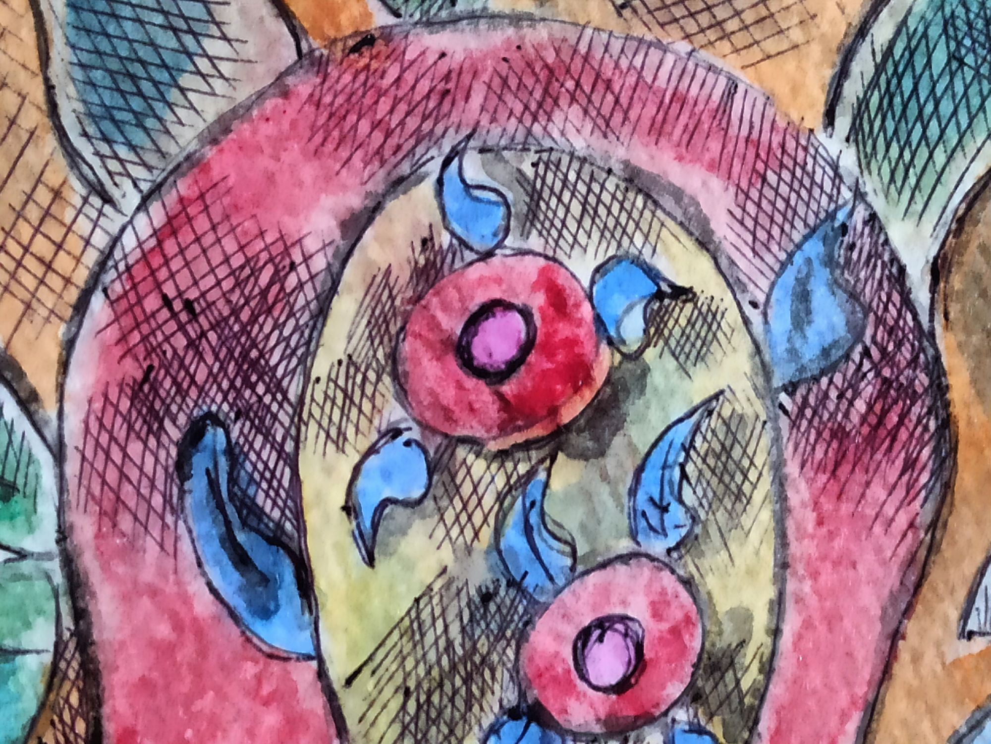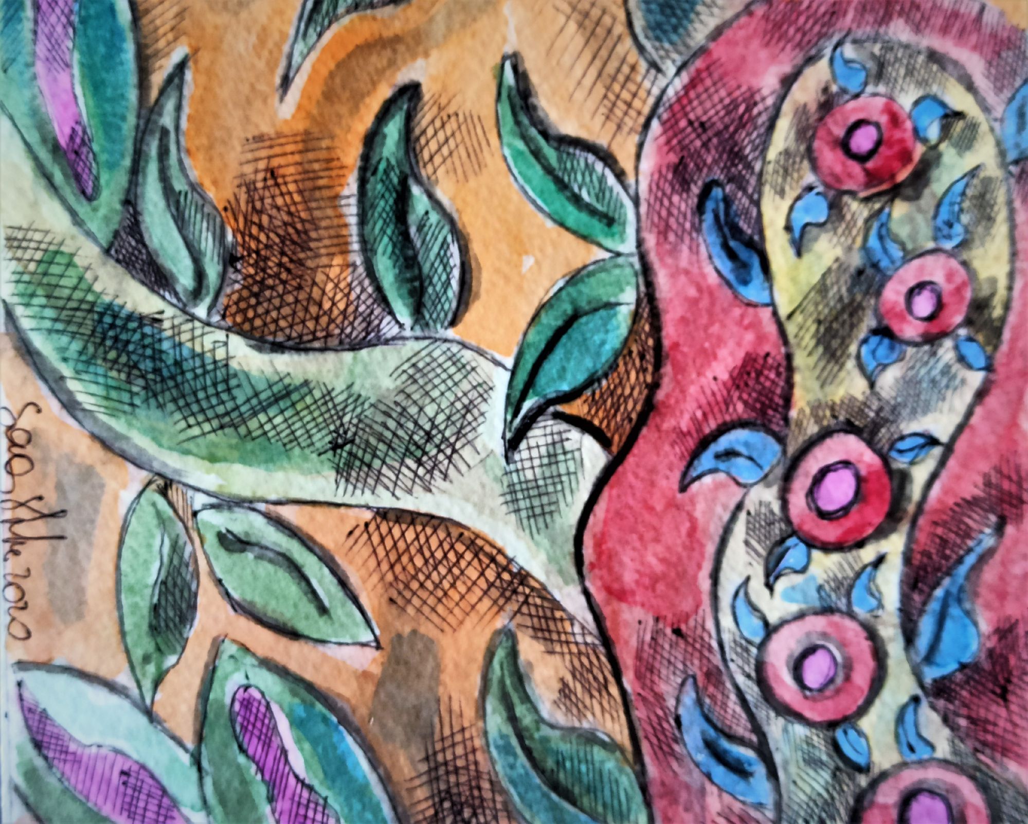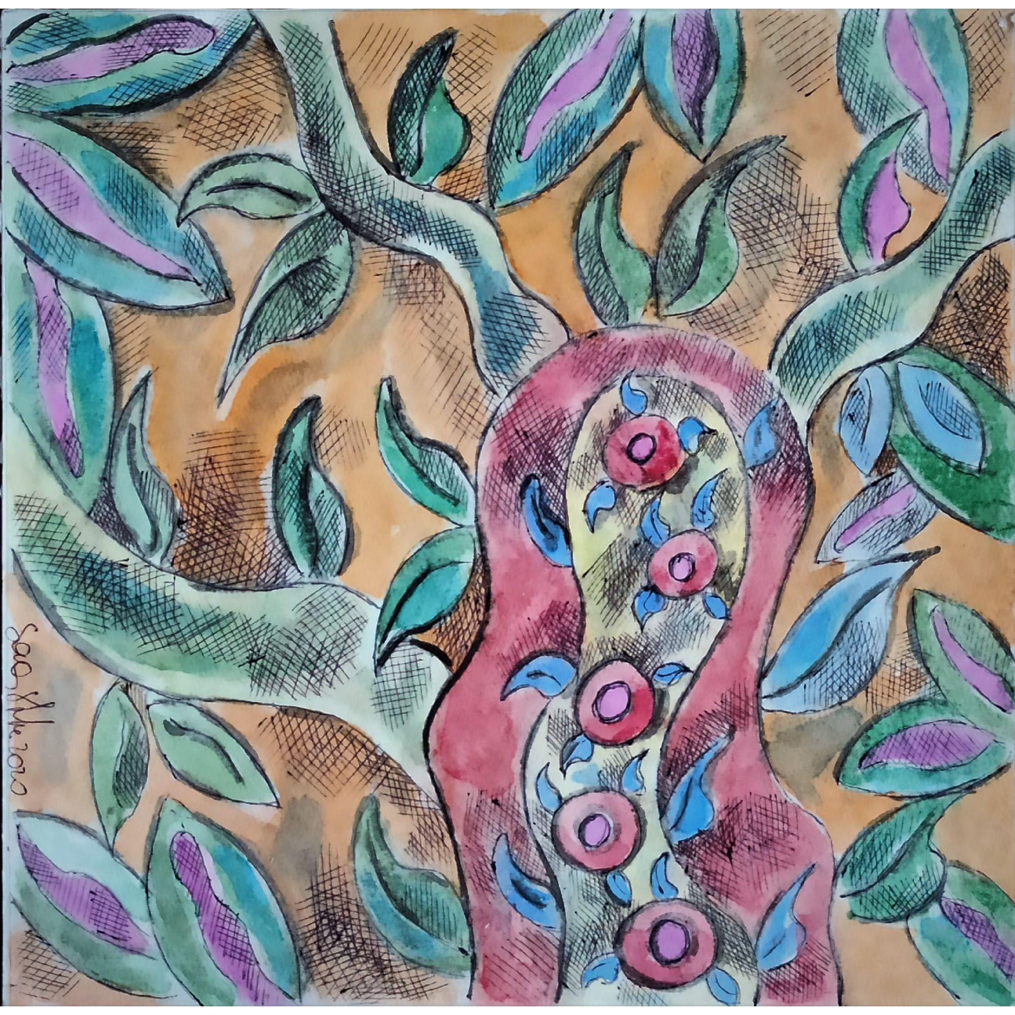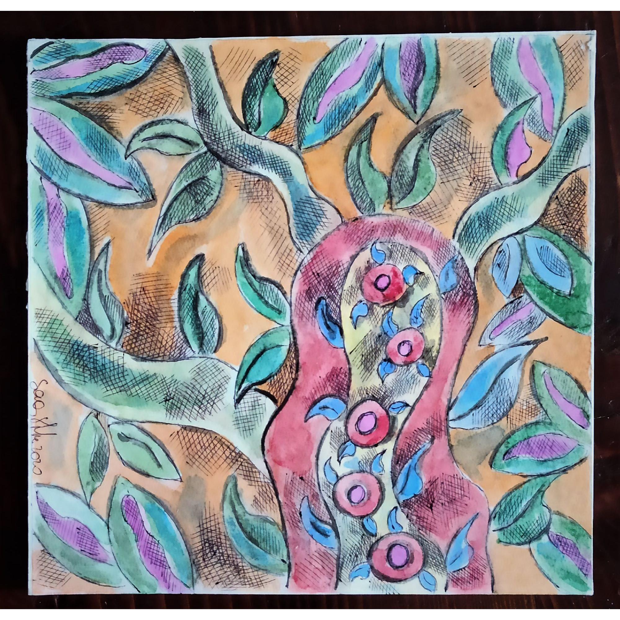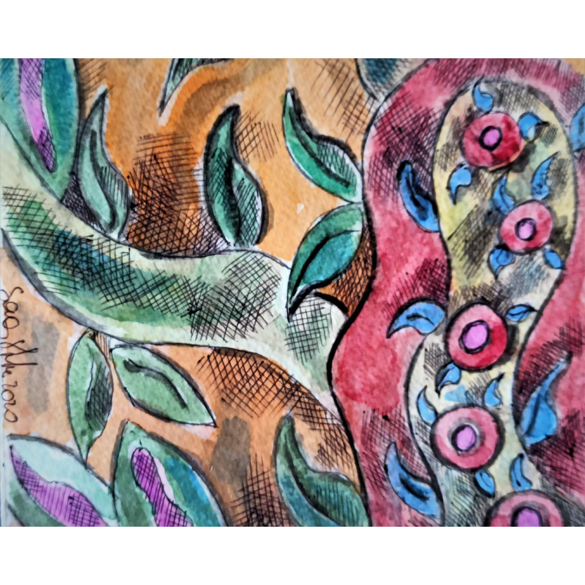 Opera su carta per acquarello da 300g. ,tecnica mista fa parte di tre opere che l' artista ha realizzato per la mostra " ISOLE" che si è tenuta prima a Padova (Italia) poi a Berlino tra il 2020 e il 2021,è una riflessione sul difficile momento dell' isolamento dovuto all' emergenza Coronavirus, ognuno confinato nella sua piccola isola.Sonia Strukul ha osservato la natura, le piante che hanno continuato il loro ciclo vitale malgrado noi ....