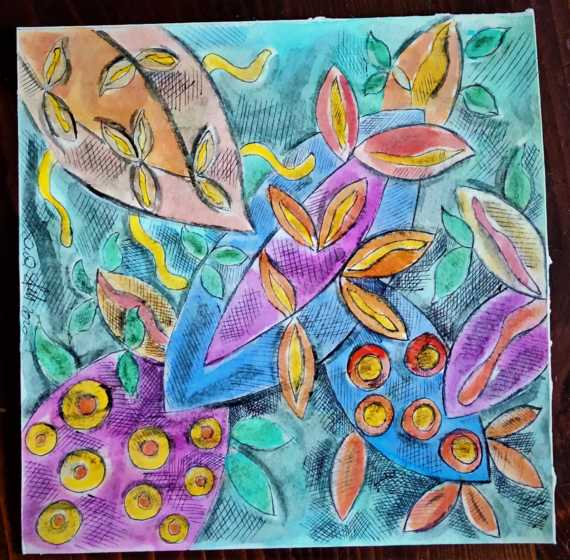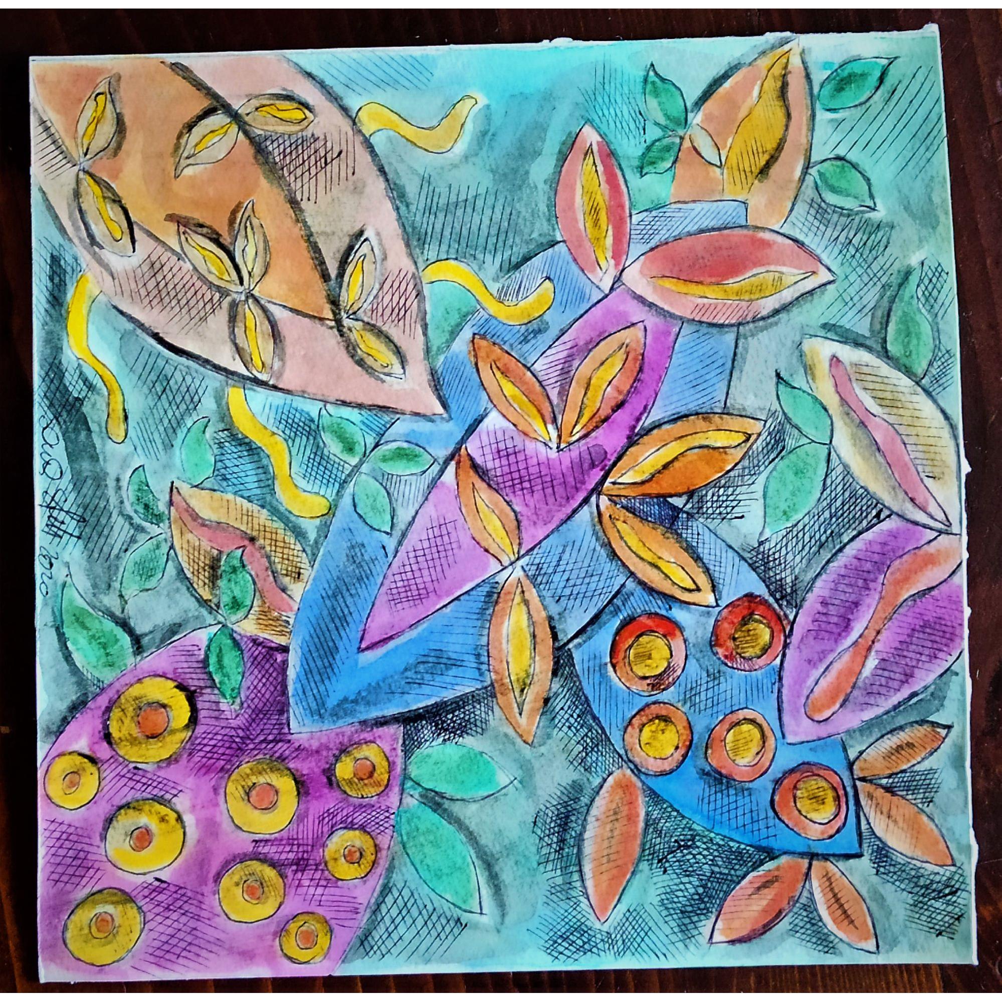 Opera su carta per acquarello da 300g. ,tecnica mista fa parte di tre opere che l' artista ha realizzato per la mostra " ISOLE" che si è tenuta prima a Padova (Italia) poi a Berlino tra il 2020 e il 2021,è una riflessione sul difficile momento dell' isolamento dovuto all' emergenza Coronavirus, ognuno confinato nella sua piccola isola.Sonia Strukul ha osservato la natura, le piante che hanno continuato il loro ciclo vitale malgrado noi ....
