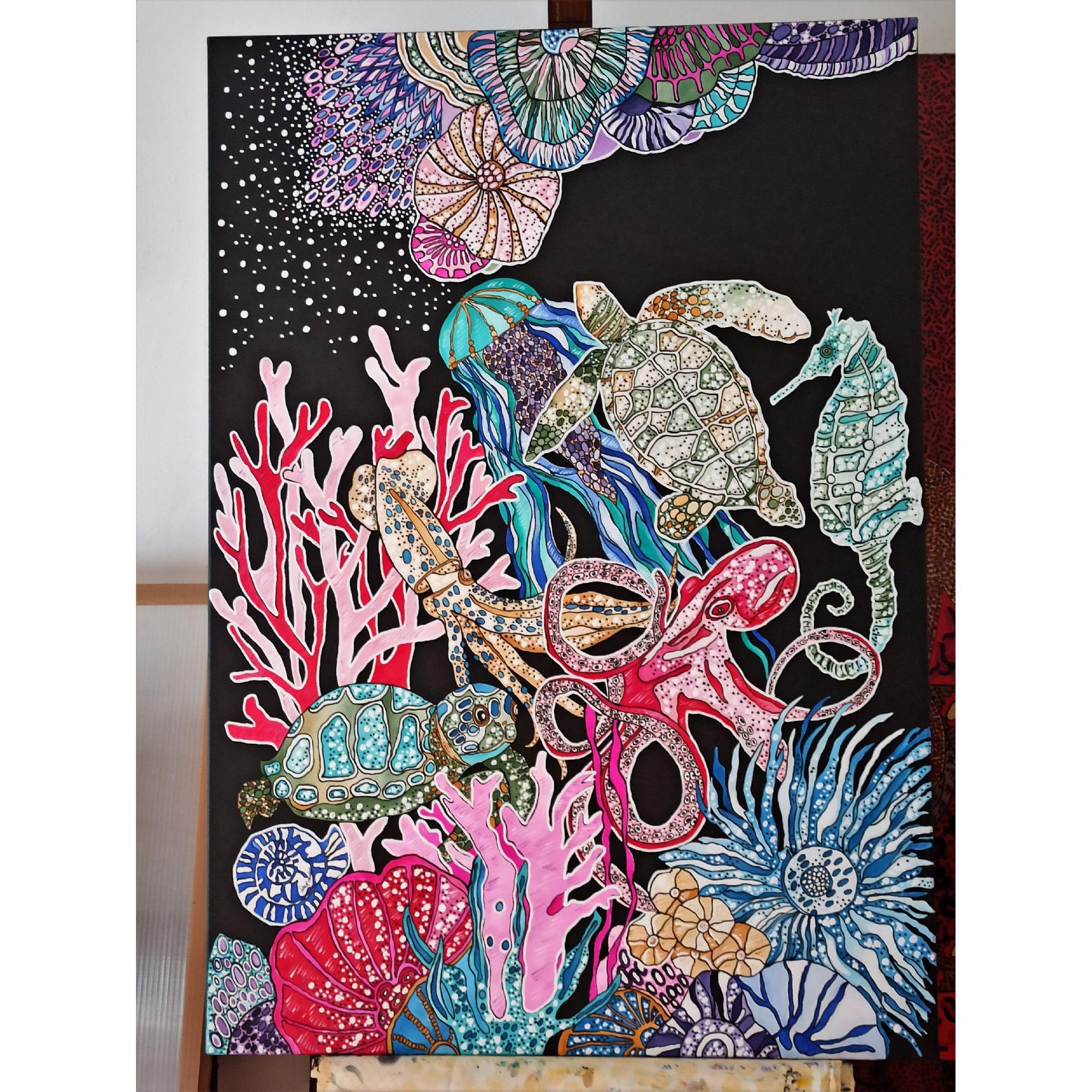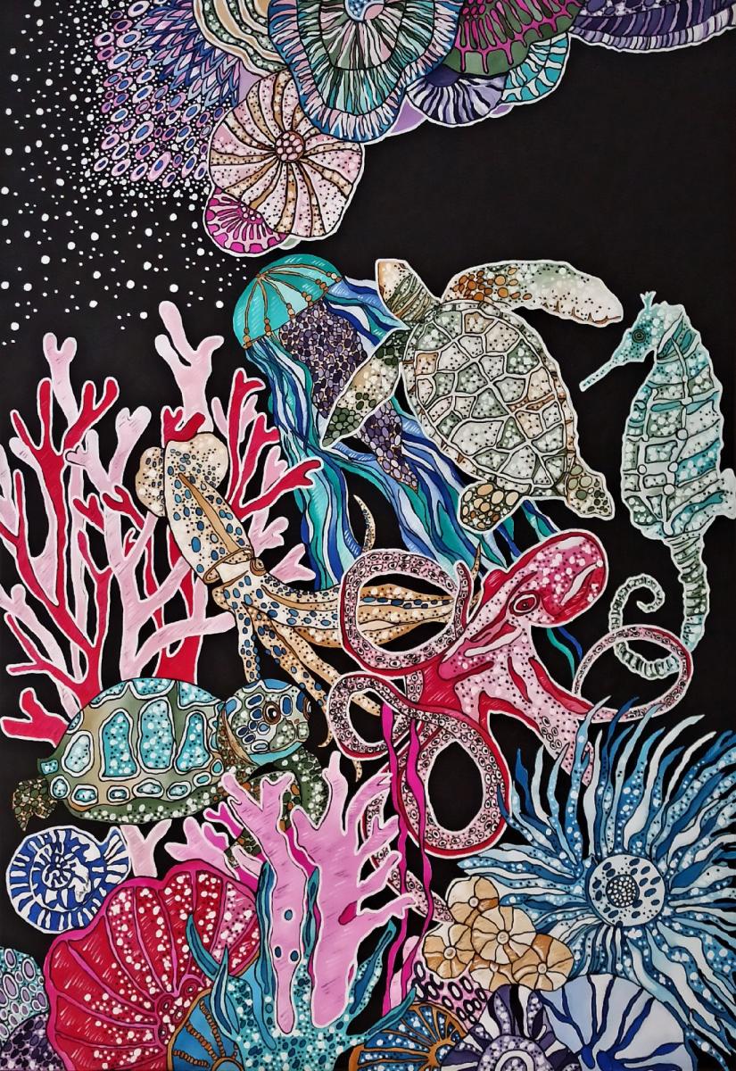 Quest' opera fa parte dell' ultima ricerca dell' artista che indaga sugli eco sistemi ,in questo caso quello marino.