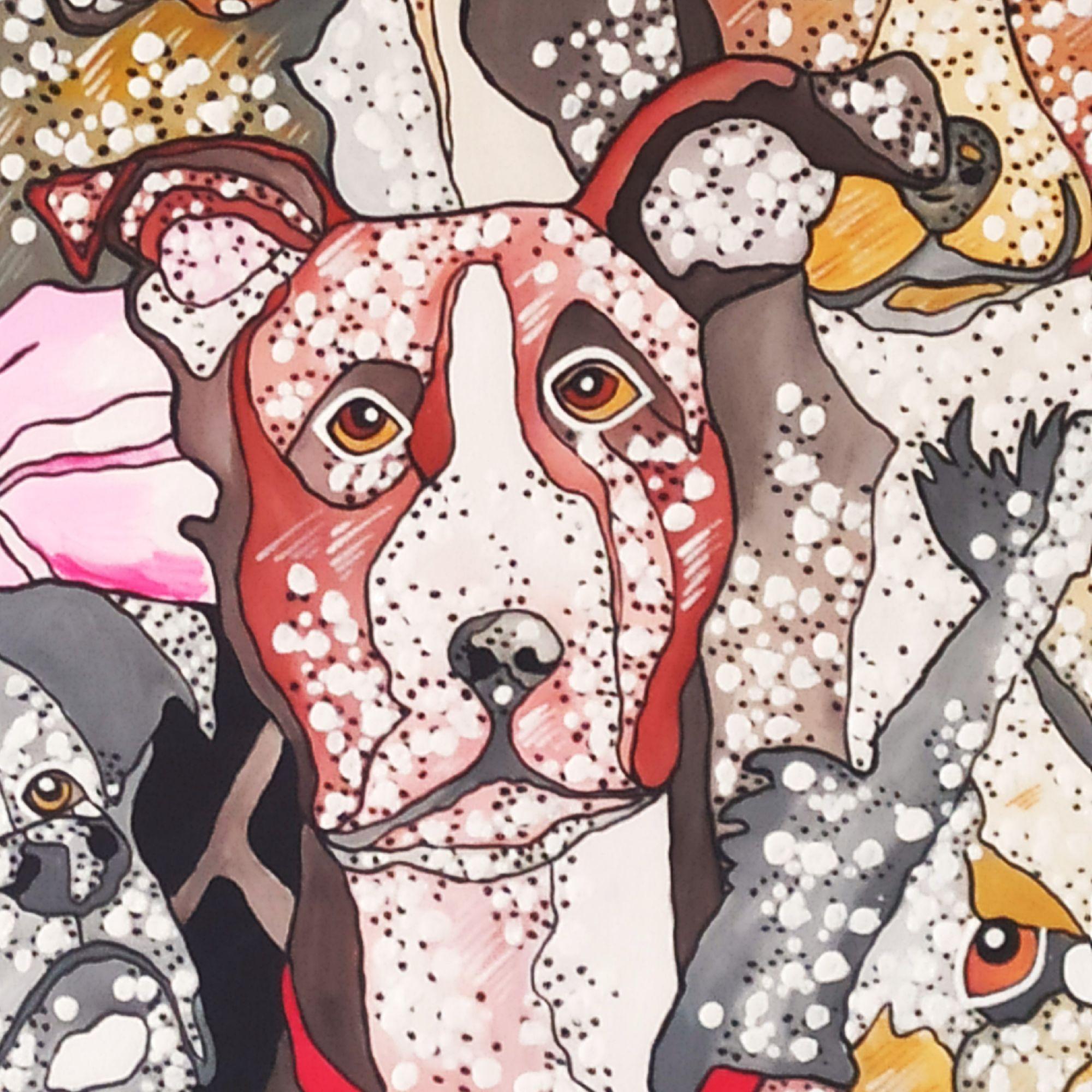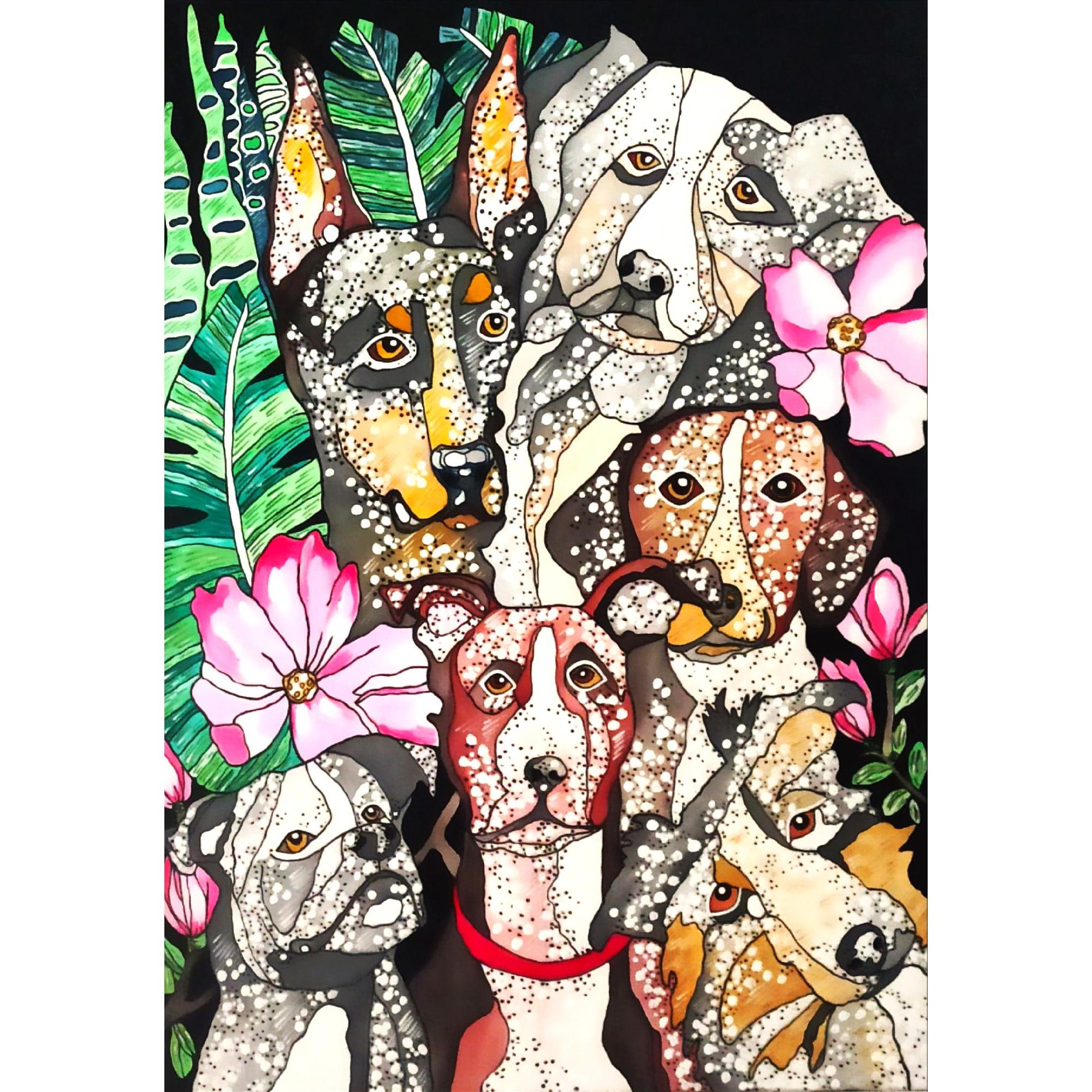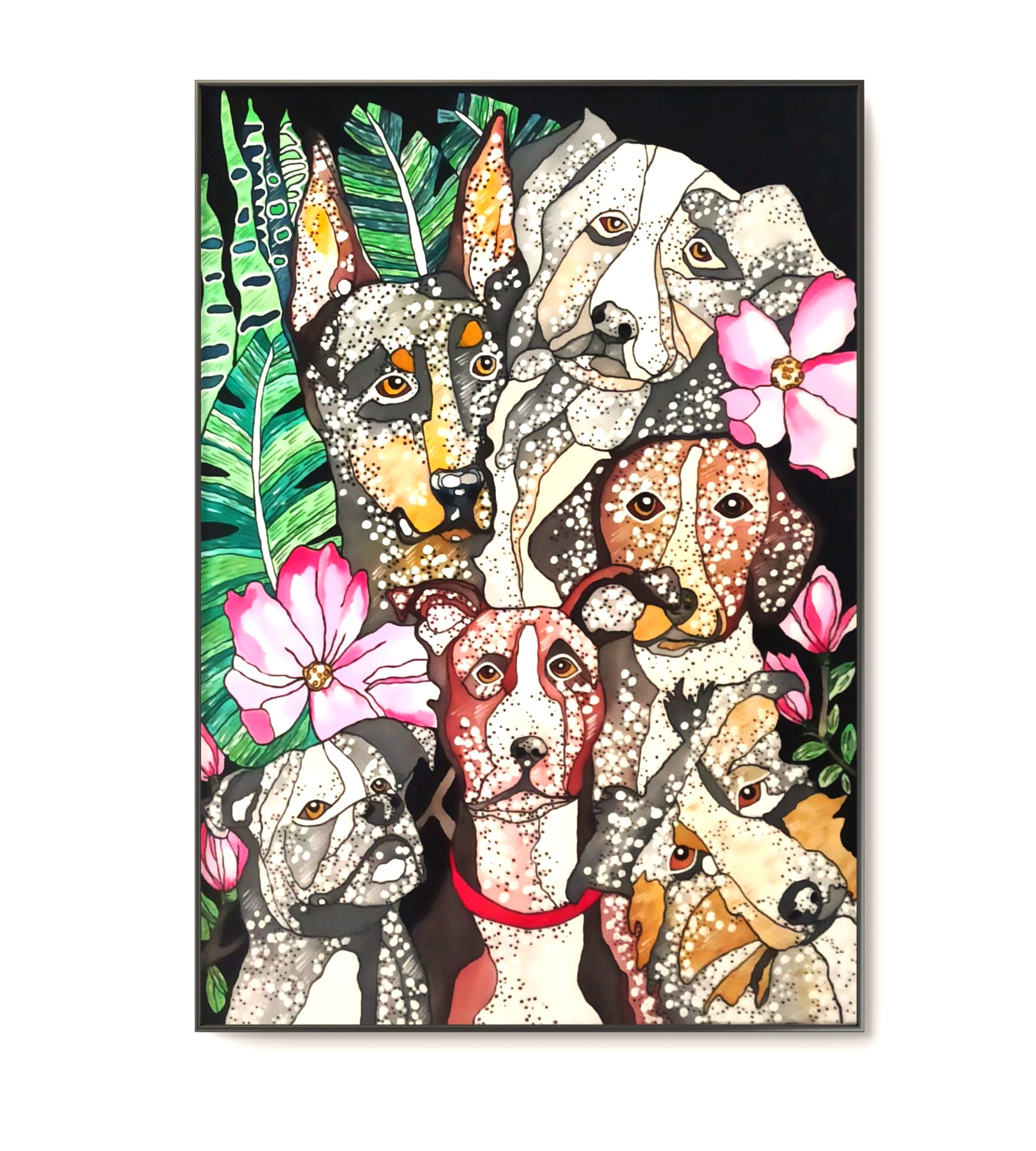 Questo quadro ritrae dei cani in un ambiente naturale, sono dei ritratti che con lo sguardo ci osservano e osservano il mondo
