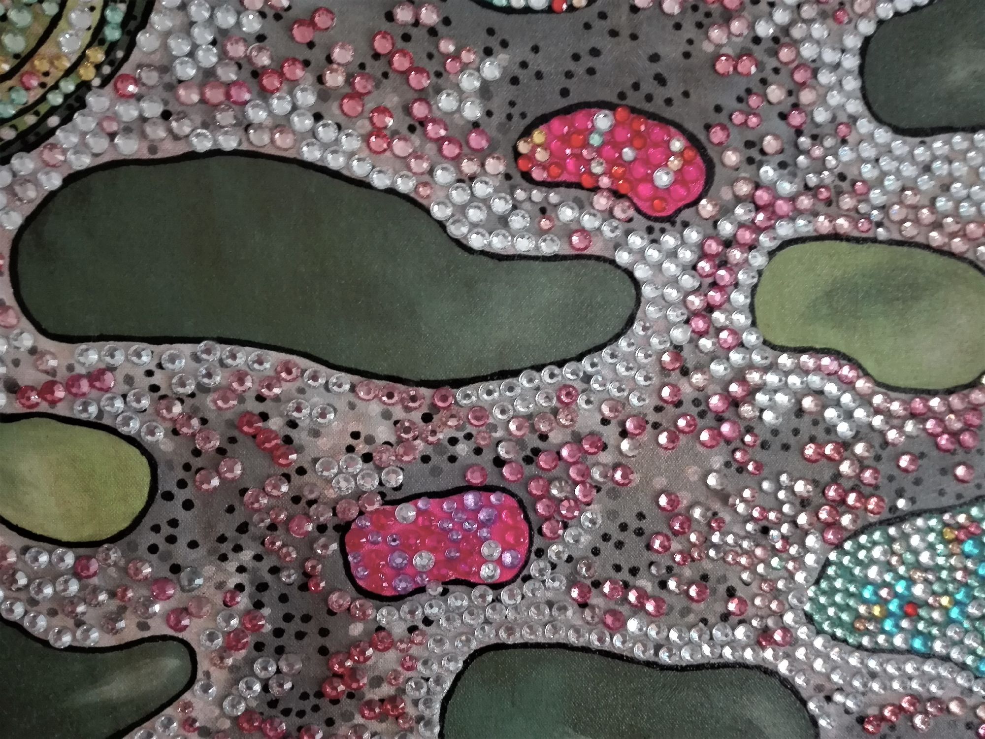 acrilico su tela con cristalli swarovski, tela montata su telaio, 2018