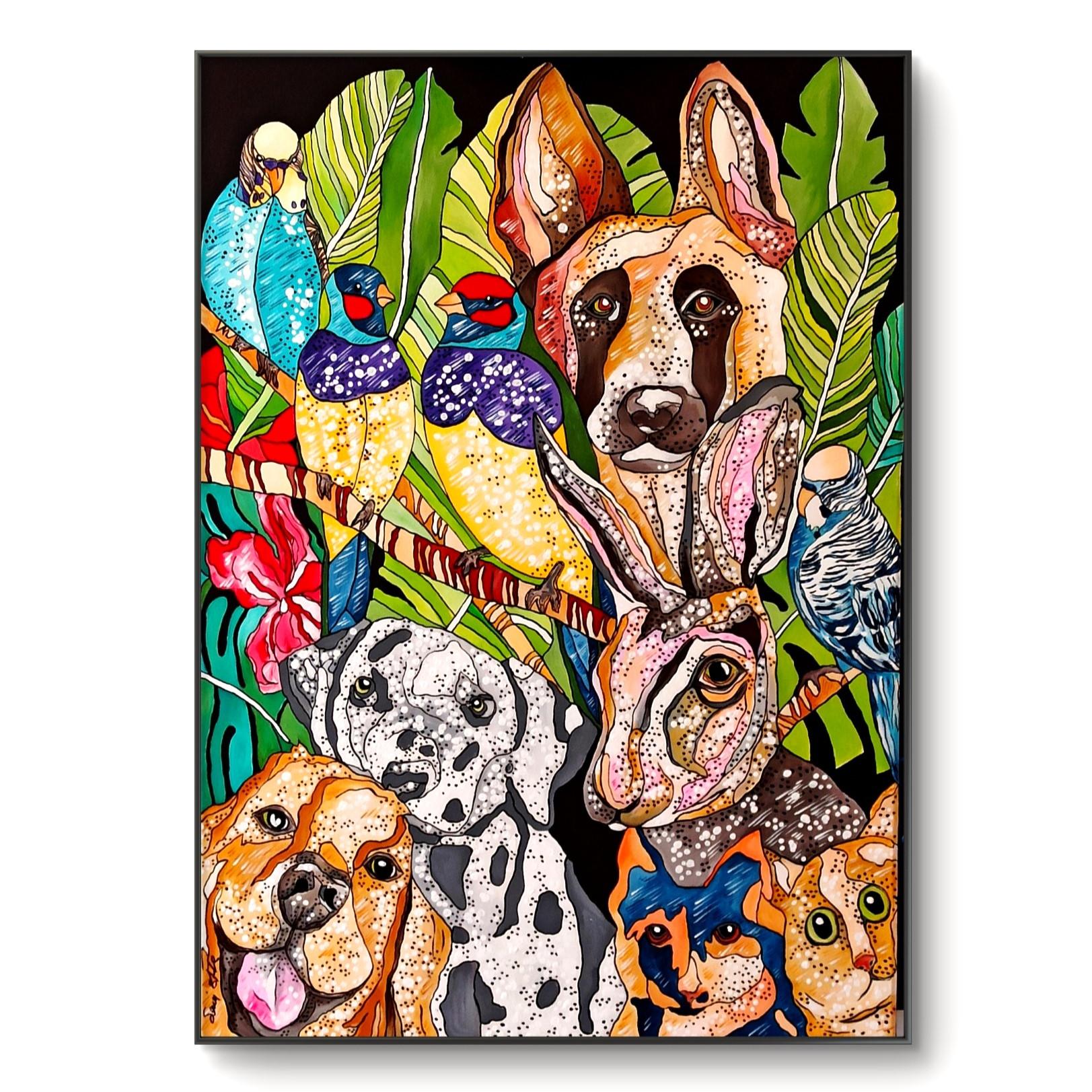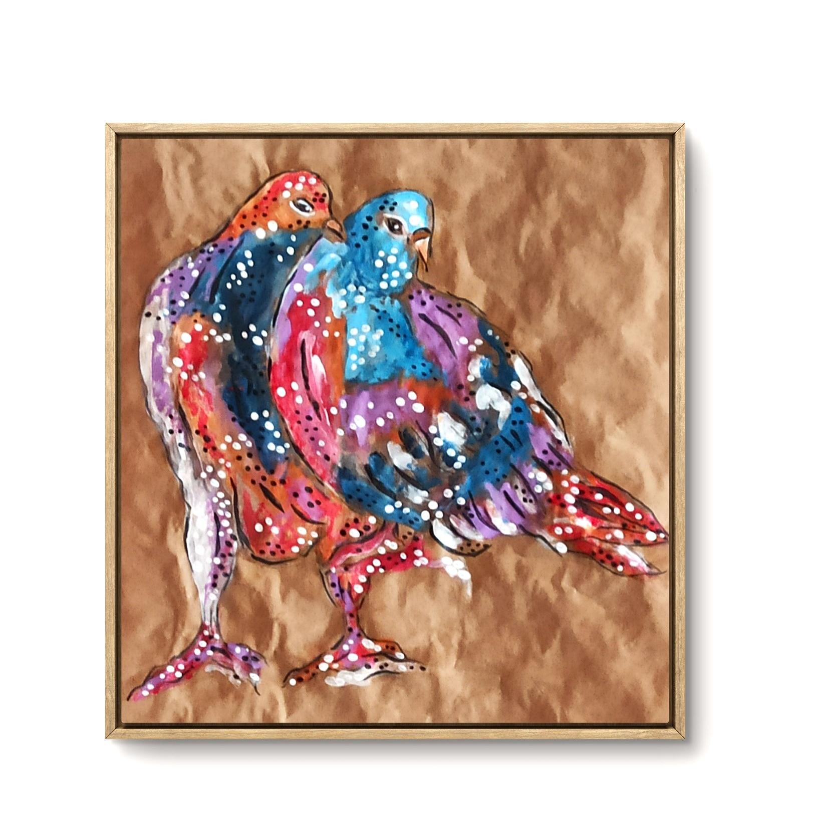 COMPOSIZIONE PAPPAGALLI CIVETTE E TELEFONO NATURA VIVA
