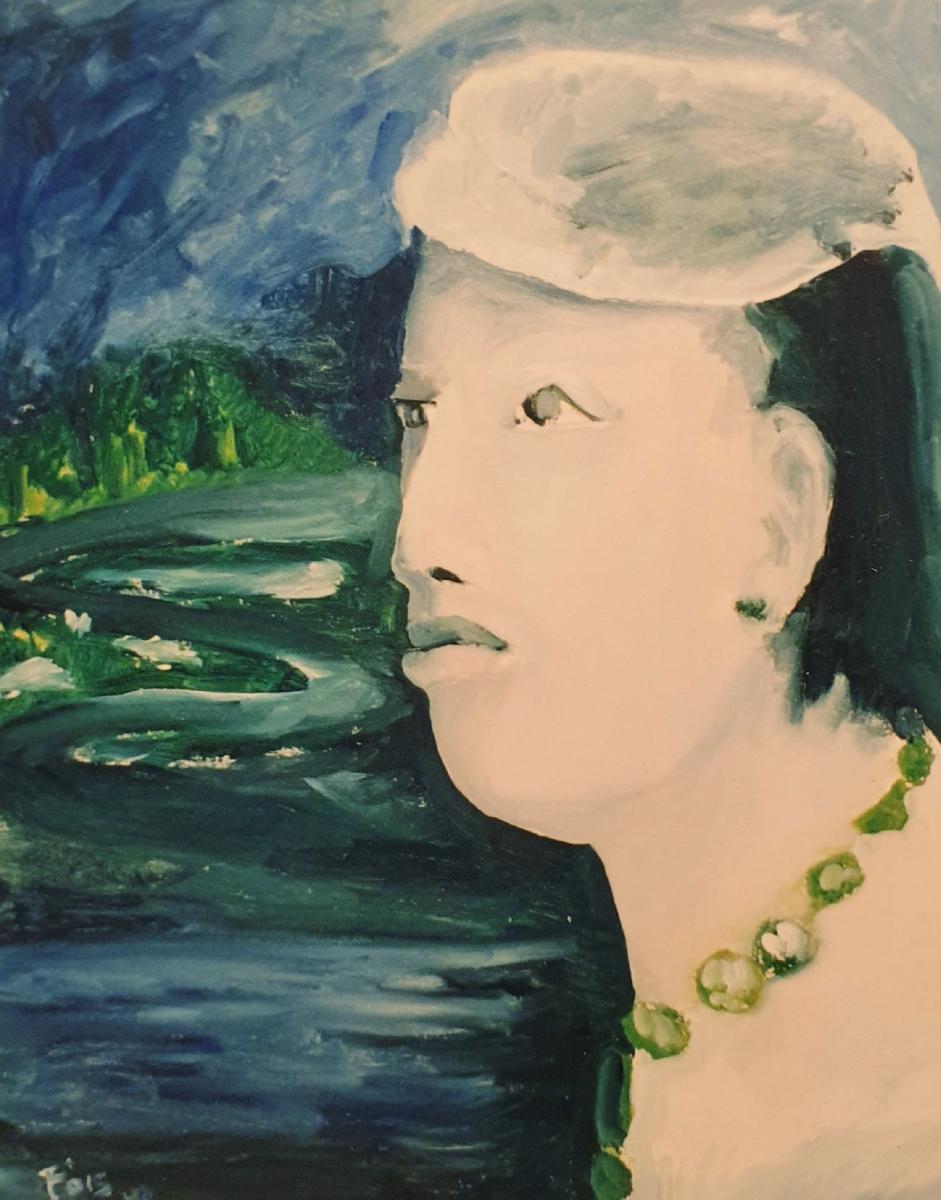 Ritratto in blu con collana