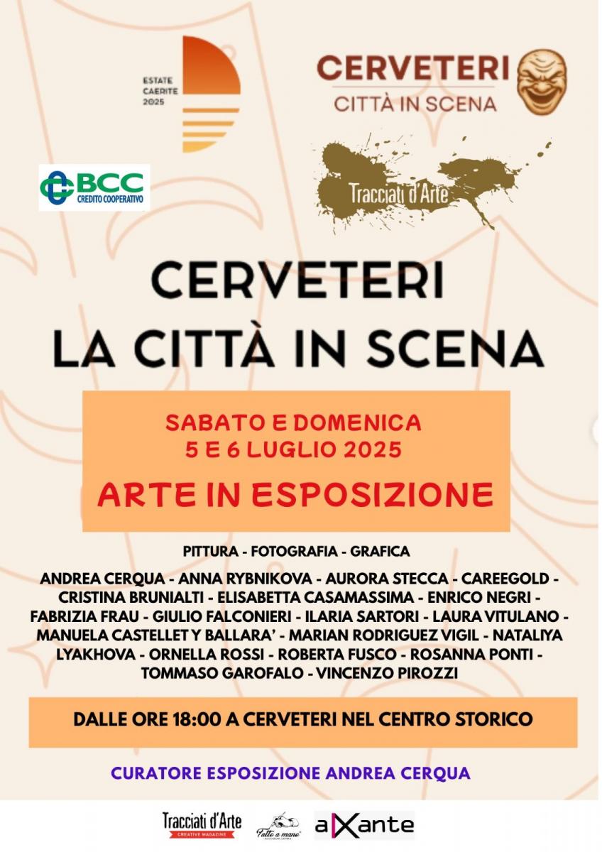 SABATO E DOMENICA 5 E 6 LUGLIO 2025 ARTE IN ESPOSIZIONE PITTURA - FOTOGRAFIA - GRAFICAEspongono :ANDREA CERQUA - ANNA RYBNIKOVA - AURORA STECCA - CAREEGOLD -CRISTINA BRUNIALTI - ELISABETTA CASAMASSIMA - ENRICO NEGRI -FABRIZIA FRAU - GIULIO FALCONIERI - ILARIA SARTORI - LAURA VITULANO -MANUELA CASTELLET Y BALLARA' - MARIAN RODRIGUEZ VIGIL - NATALIYA LYAKHOVA - ORNELLA ROSSI - ROBERTA FUSCO - ROSANNA PONTI -TOMMASO GAROFALO - VINCENZO PIROZZI ( dalle ore 18:00 del 5 fino alle 23.59 del 6 )CERVETERI NEL CENTRO STORICO CURATORE ESPOSIZIONE ANDREA CERQUA