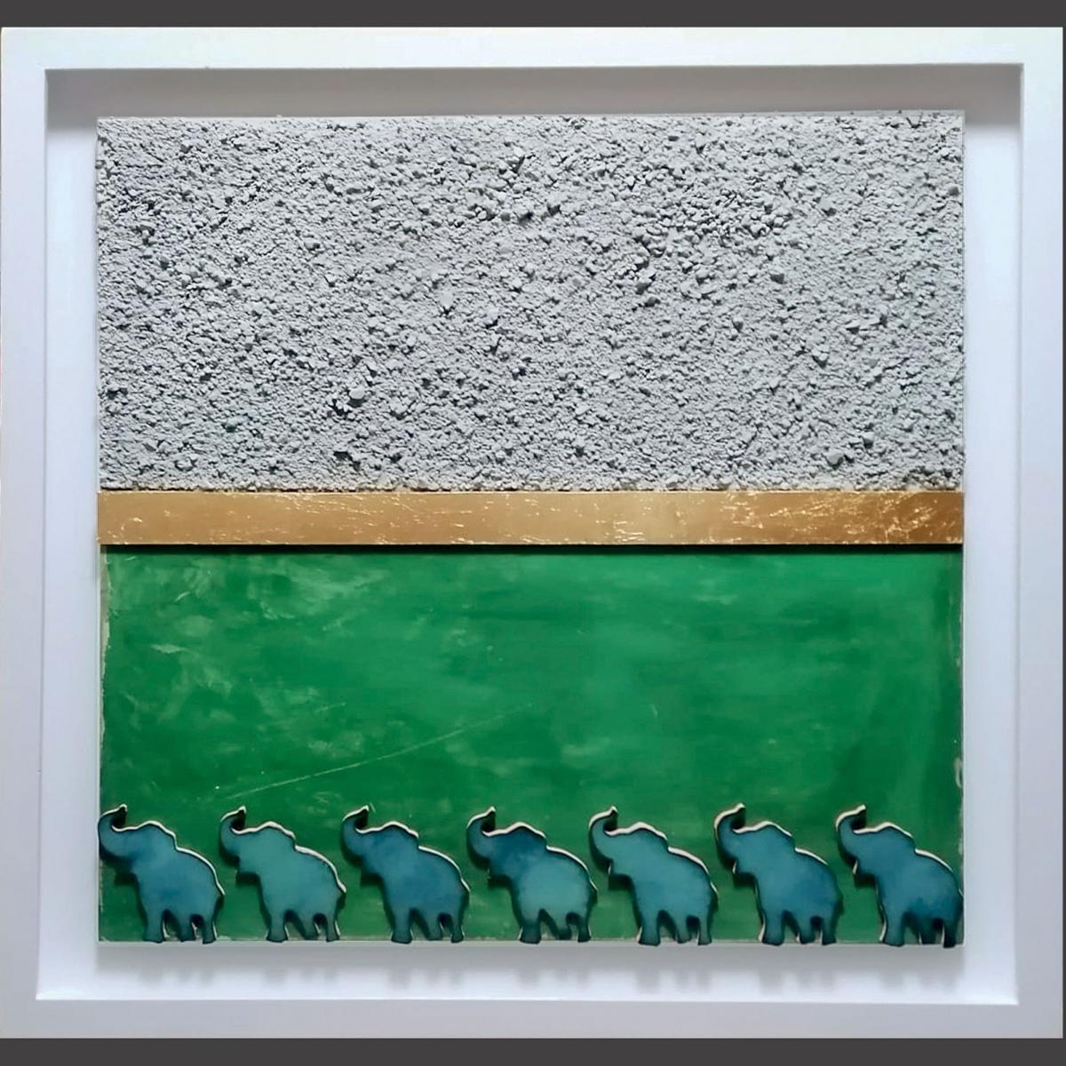Applicazioni in ceramica, stucco e vernici, tavola incorniciata ad arte, 2023