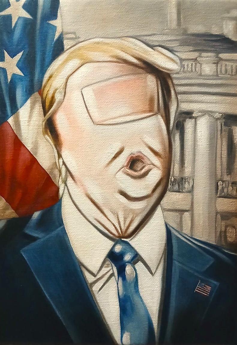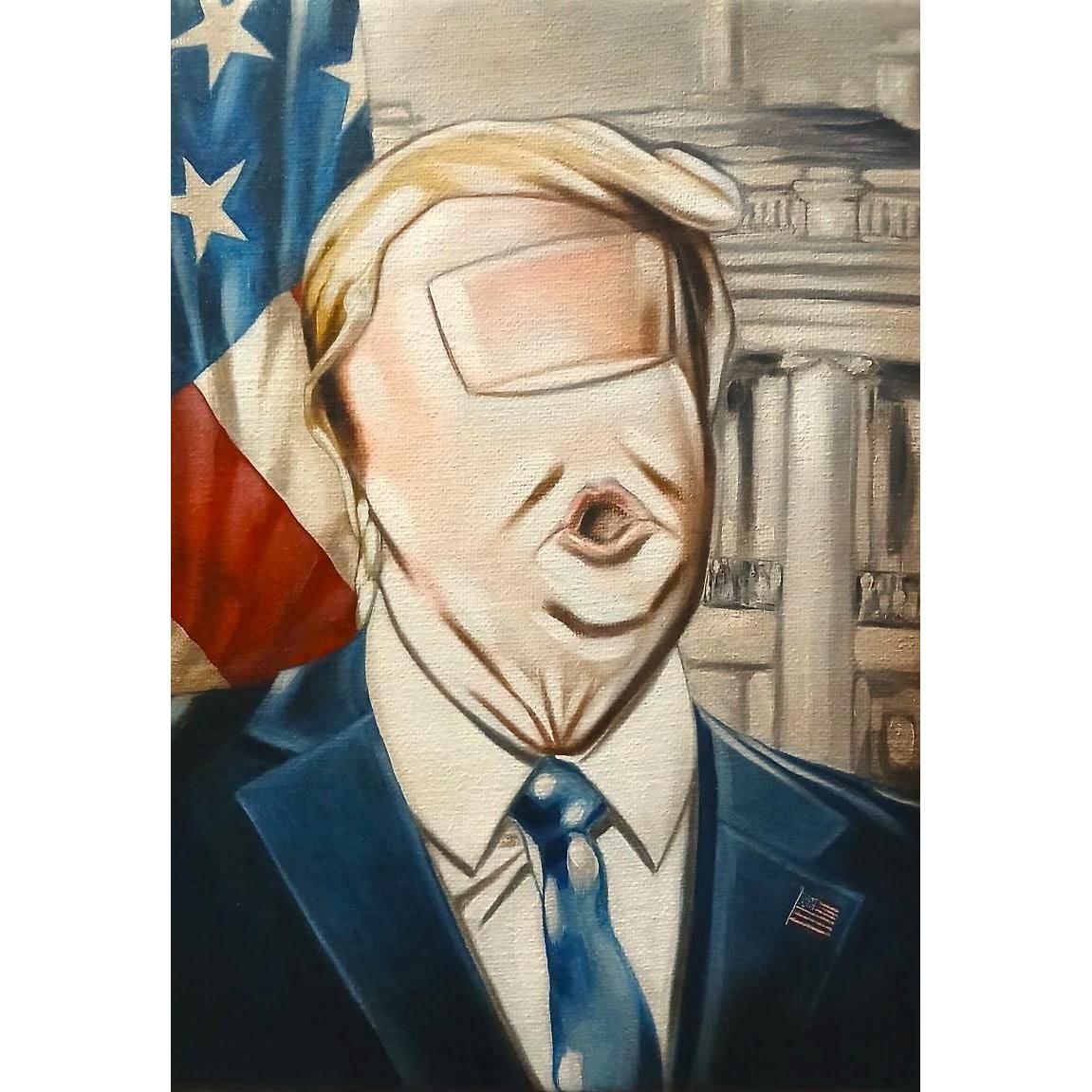 "La vera maestria di Raffaele Ciotola risiede nella sua capacità di cristallizzare una personalità in un unico segno. In quest'opera, l'artista cattura l'espressione caratteristica della bocca del Presidente: un tratto frequente e inconfondibile della sua immagine pubblica. Nonostante il dito sostituisca il volto, questo dettaglio anatomico parla con forza, rendendo il soggetto istantaneamente identificabile dall'osservatore globale."