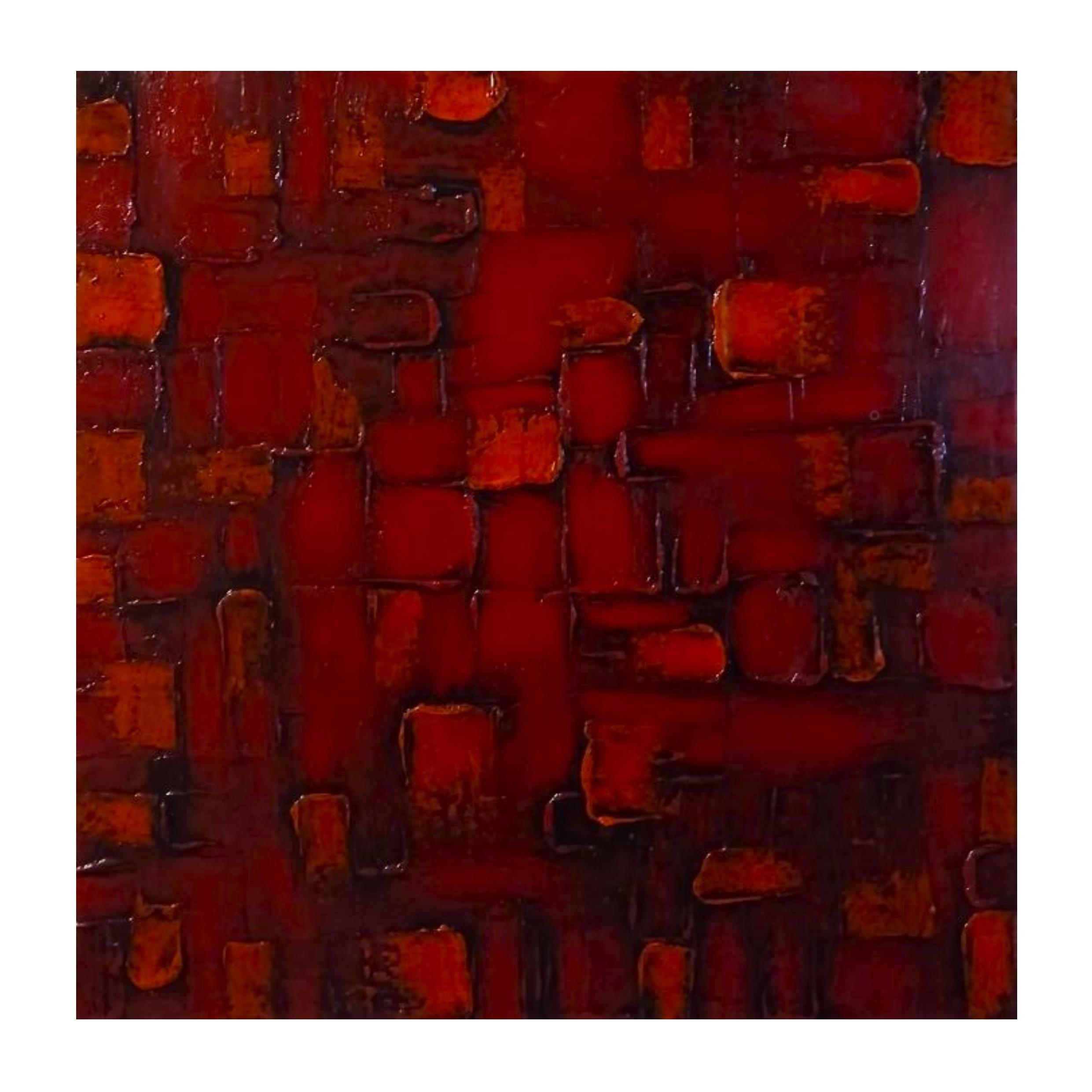 La struttura e il ritmo:La composizione si articola attraverso una griglia irregolare di tasselli cromatici, un mosaico architettonico dell'anima. L'uso sapiente del pigmento crea rilievi che evocano la solidità di mura antiche o di formazioni cristalline. Questo ritmo visivo suggerisce una struttura solida, uno scudo di materia che però viene "crepato" dall'energia del colore, lasciando emergere una vitalità sotterranea e indomabile.