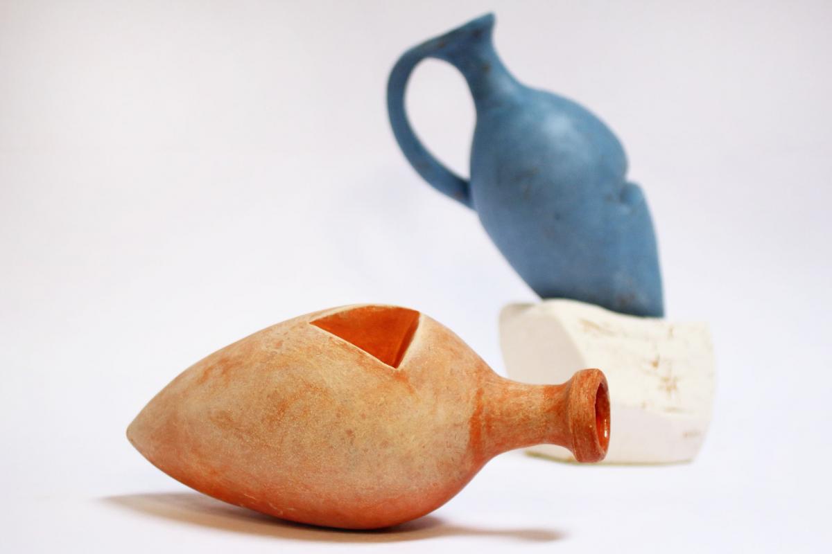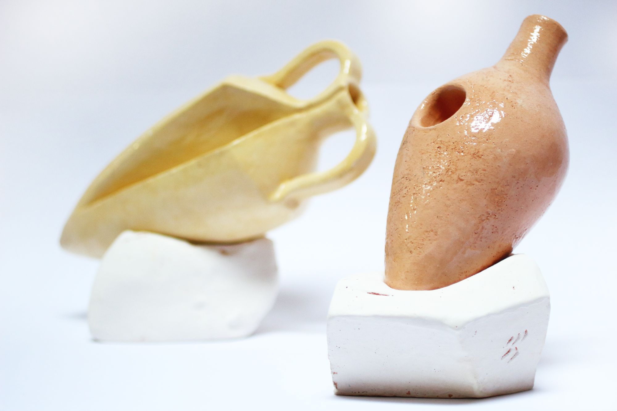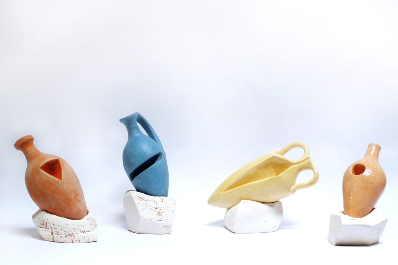 Nessi è una collezione di 4 piccole anfore – diverse per forma, colore e finiture - in ceramica,realizzate a colombino e brunitura e decorate engobbio - uno dei metodi di colorazione edecorazione più antichi – e cristalline. L’opera si completa con volumi d’appoggio, elementi inpietra calcarea sagomati a mura poligonali. Le anfore, per natura instabili, trovano nel basamentouna loro naturale allocazione come in terreni fertili e accoglienti.Le colorazioni pastello, nella duplice versione opaca e lucida, si abbinano a forme e dettagli di voltain volta differenti. Le anfore, ottenute dalla sottrazione di forme geometriche pure, abbinandosi aibasamenti, offrono una nuova lettura dell’insieme che ri-vive sotto una luce inedita.Oggetto “antico” ma sempre attuale l'anfora è, al tempo stesso, contenitore e contenuto erappresenta in ogni senso l'incontro di tutti i reciproci esistenti in Natura, esprimendo sul pianodella coscienza manifesta una dimensione consapevole, inclusiva e totale, in cui prevale l'aspettocontemplativo e compartecipativo della realtà. In alchimia, l’anfora, esprime “la coincidenza degliopposti” e in senso ermetico “l'identità di alto e basso”: è quindi metafora di tutto ciò che esiste inogni ciclo di vita-morte-rinascita e sue trasformazioni.L’opera, rilettura contemporanea delle antiche anfore romane, diventa espressione di un saper farelocale legato alla tradizione. L’Anfora, diventa testimonianza di un viaggio fatto di terre, sapori e tradizioni, contenitoremetaforico di storie passate e future, “misura di capacità”, che trova la sua funzione primaria nellaconservazione di quanto di più prezioso il territorio locale offre.Anfore che rappresentano e custodiscono la memoria di un paesaggio culturale e di una grandeeredità artistica.