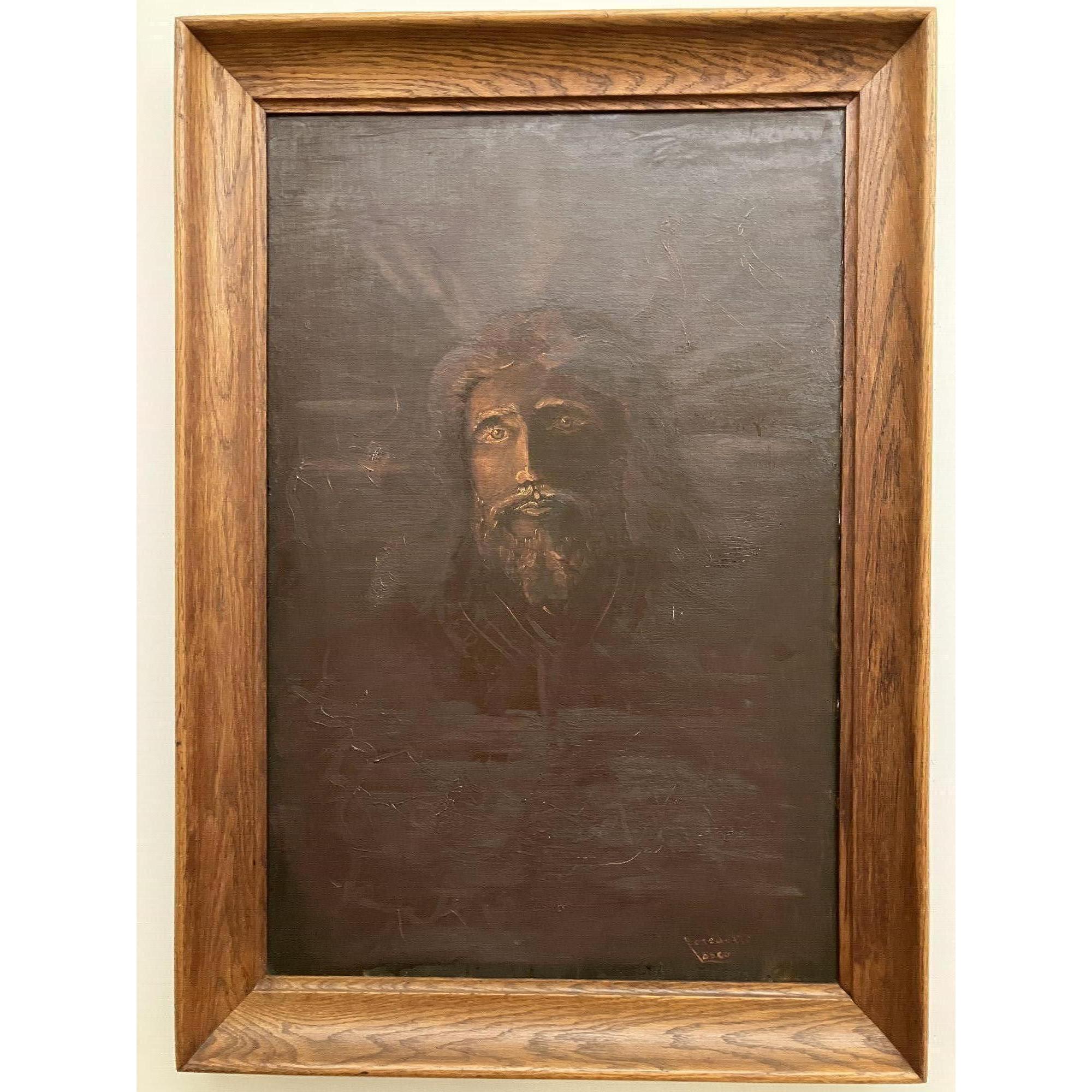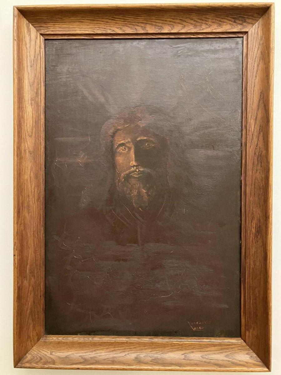 Il Volto di Cristo emerge dal buio, è parzialmente illuminato, sembra sospeso tra luce e ombra.