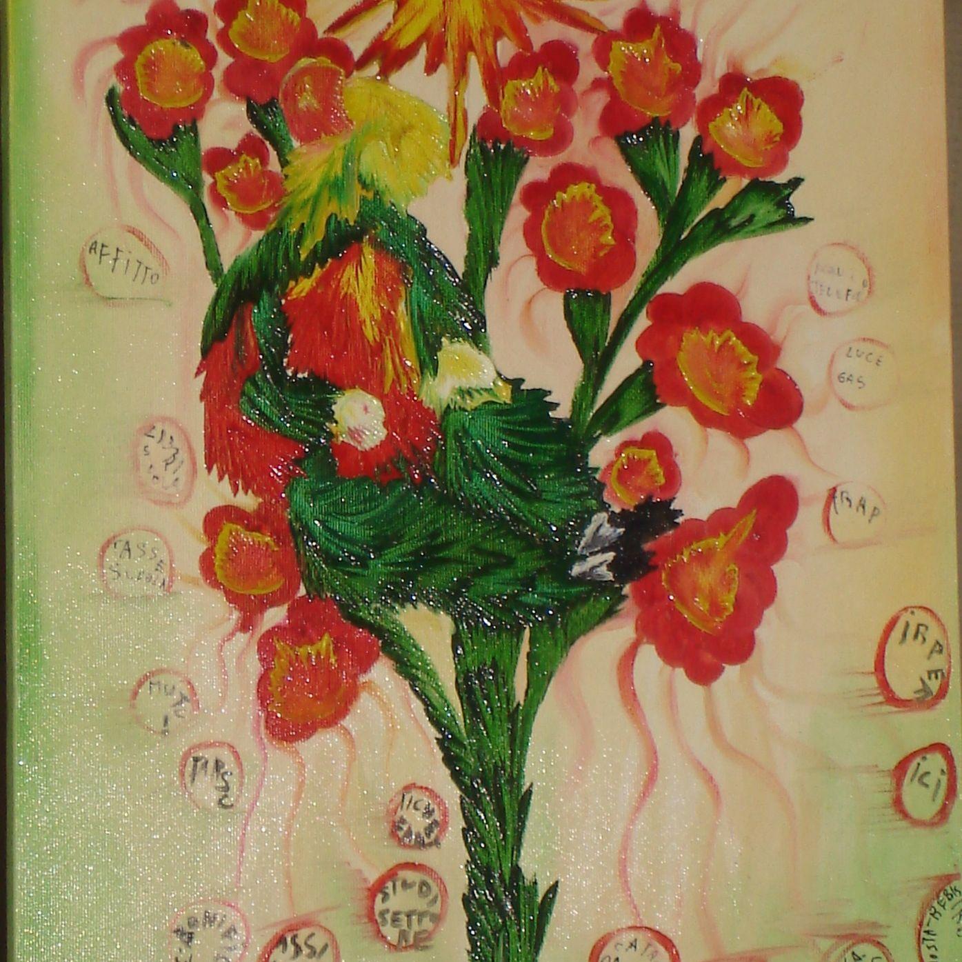 materiali organici e plastici su tela, Tela all'interno di teca, 2015