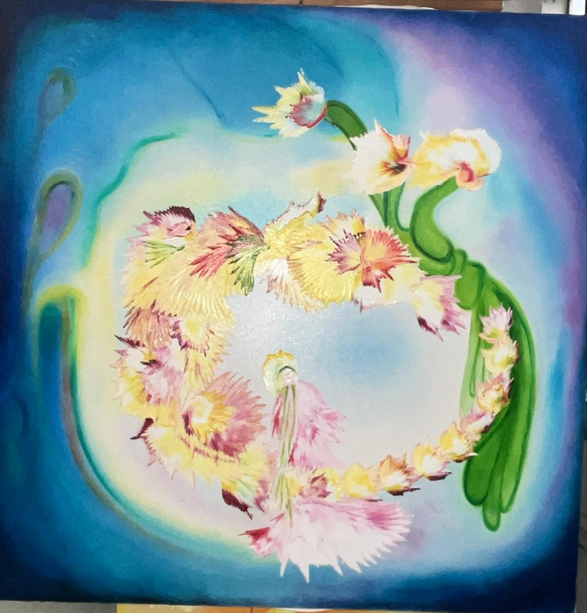 Le forme non hanno confini netti perché la notte non divide, non giudica, non separa: la notte unisce. Scioglie i margini, confonde dolcemente ciò che di giorno appare rigido. Ogni pennellata è stata un pensiero tenero, un sogno lasciato scivolare sulla tela senza paura di cadere. Dipingere era il mio modo di restare attaccata alla gioia di vivere anche quando tutto sembrava faticoso, incerto, fragile.