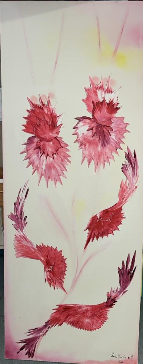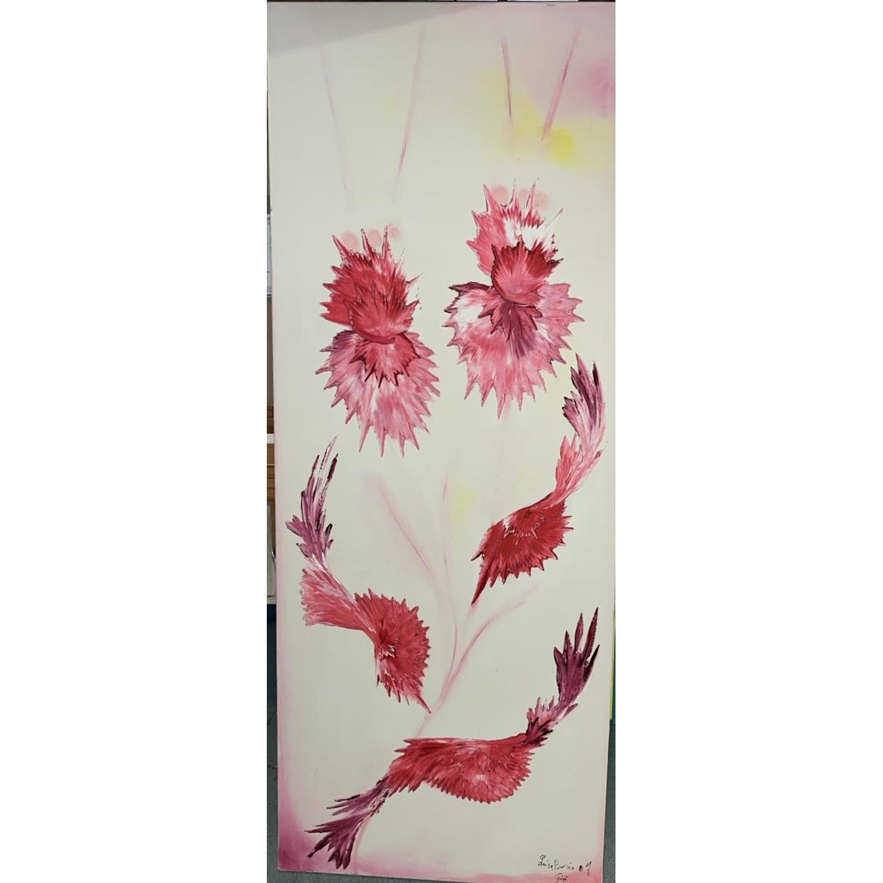 Quest’opera è un’esplosione di luce, un’apertura improvvisa dell’anima. Ho lasciato che i colori si espandessero senza timore: gialli che scaldano come il sole sulla pelle, rosa e rosso che pulsano di amore e felicità. Le forme sono morbide, fluide, in continuo movimento, perché la gioia non è mai ferma, non si lascia imprigionare.