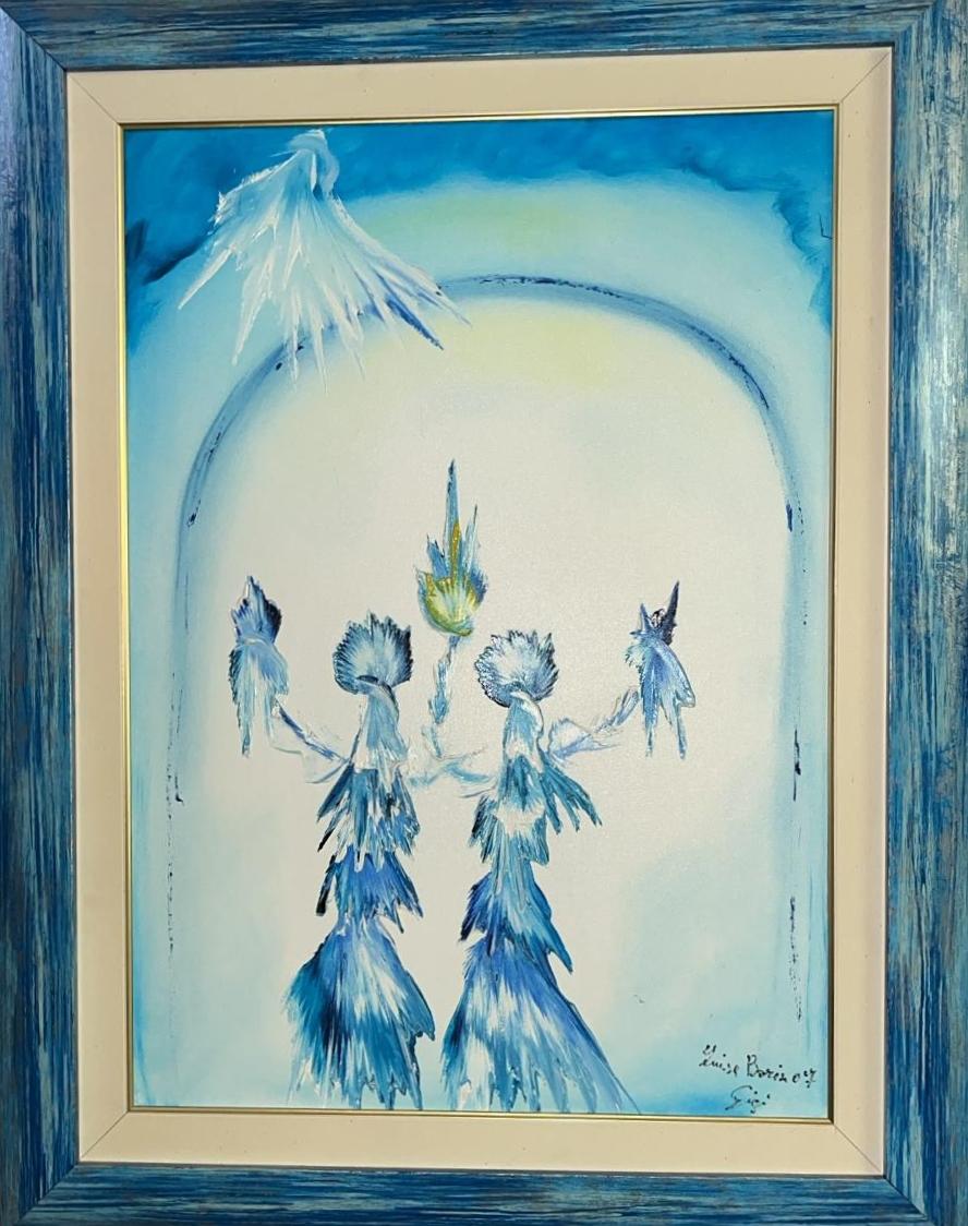 Questo quadro è dedicato a mio marito ed è un atto d’amore che va oltre il tempo. Le forme si fondono, si inseguono, si sostengono in uno spazio che non ha confini. Qui racconto l’idea di un infinito condiviso, di un legame che non si consuma ma si trasforma. La materia diventa unione, continuità, presenza costante. È il racconto di due vite che scelgono di camminare – e talvolta perdersi – insieme, sapendo che l’infinito non è un luogo lontano, ma qualcosa che si costruisce ogni giorno, nello stare l’uno accanto all’altra.