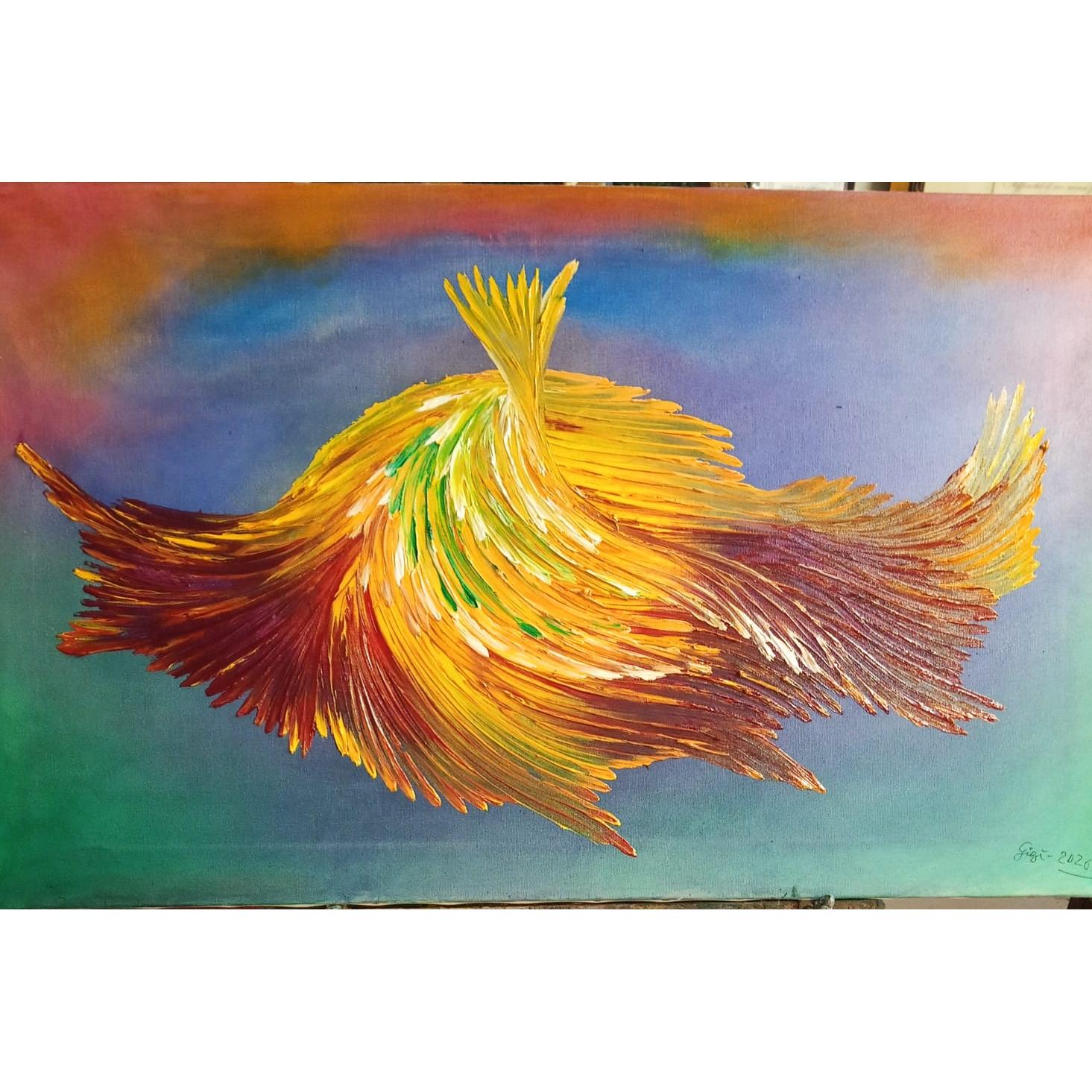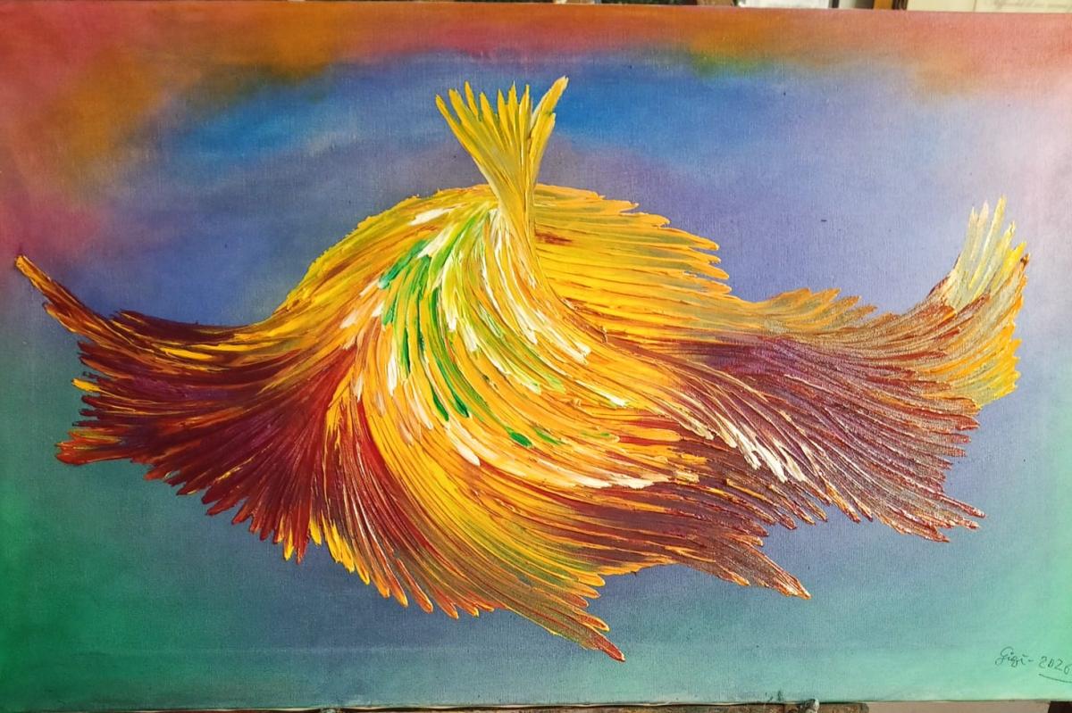 La Luce che RingraziaQuesta opera nasce da un sentimento profondo di gratitudine. Non una gratitudine detta, ma sentita, vissuta, attraversata. Il colore si muove, si apre, si espande come un respiro che finalmente si libera. Il giallo è luce, ma una luce che porta dentro di sé il rosso della vita, dell’esperienza, della fatica, e il verde della trasformazione e della guarigione. Nulla è separato, tutto si fonde sulla tela come accade dentro di me. Il movimento è forte, quasi impetuoso, ma non è caos: è consapevolezza che si apre, è energia che si libera. In questa opera non cerco di rappresentare qualcosa, ma di lasciare andare ciò che ho ricevuto, trasformandolo in colore. La luce qui non illumina soltanto, ma ringrazia.