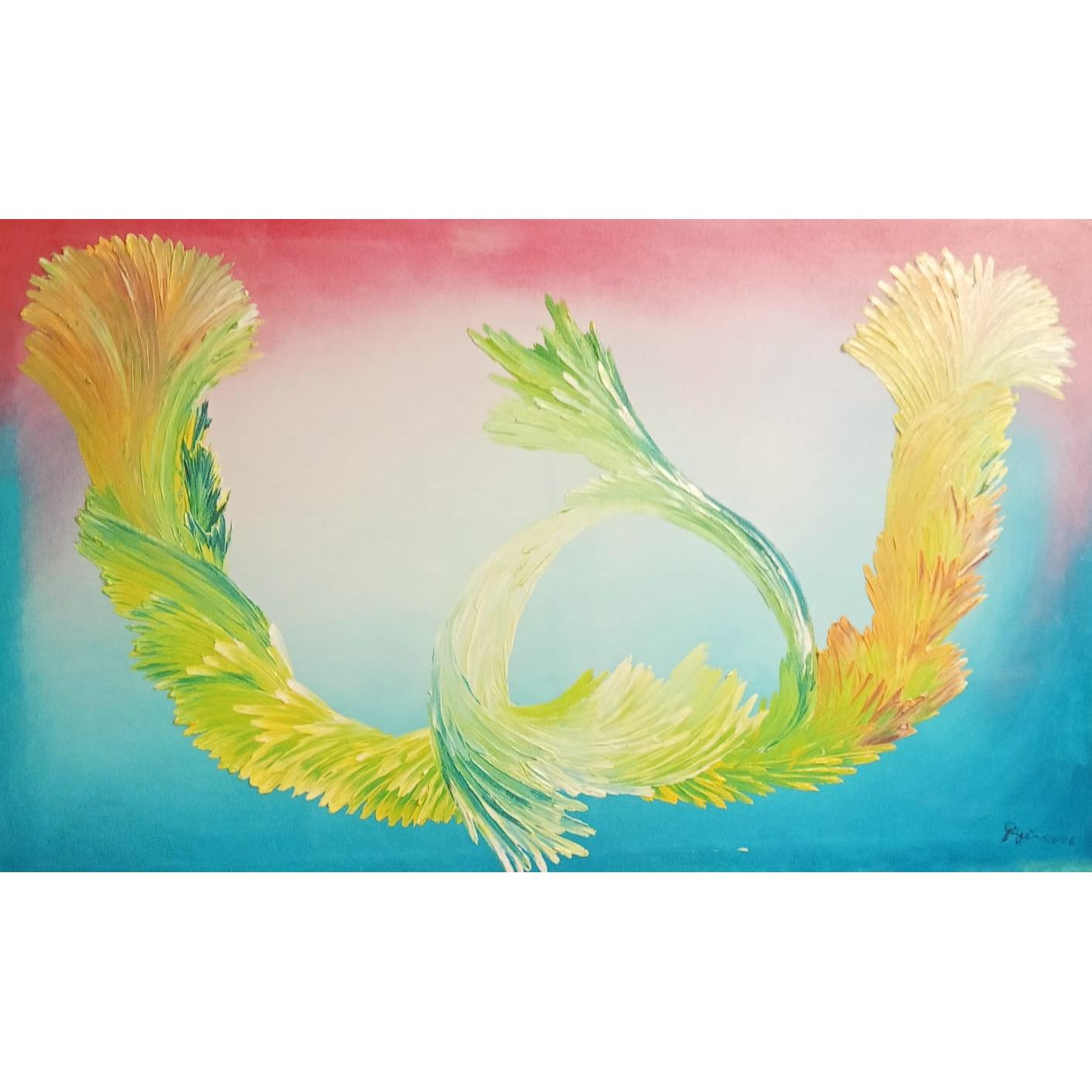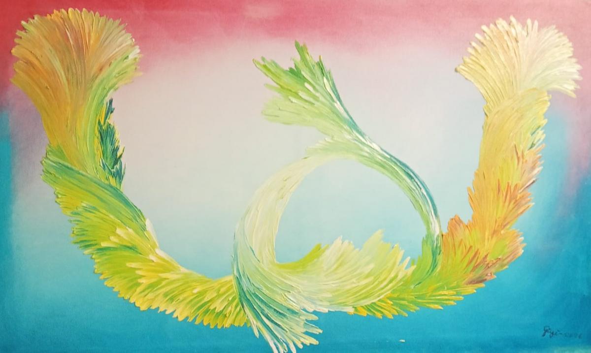 Questa opera nasce da un momento di silenzio profondo, uno spazio tutto mio dove il rumore del mondo si ferma e rimane solo il sentire. Il colore si muove leggero, si apre, si espande senza forzature, come qualcosa che cresce naturalmente. Il blu accoglie, il giallo illumina e il bianco respira, mentre il verde accompagna la trasformazione. Tutto si fonde in un movimento armonico, quasi circolare, come un ciclo che si rinnova. In questo spazio non c’è sforzo, ma presenza. La luce non esplode, ma fiorisce lentamente, trovando il suo equilibrio. È una luce calma, consapevole, che nasce dal silenzio e si manifesta con delicatezza.