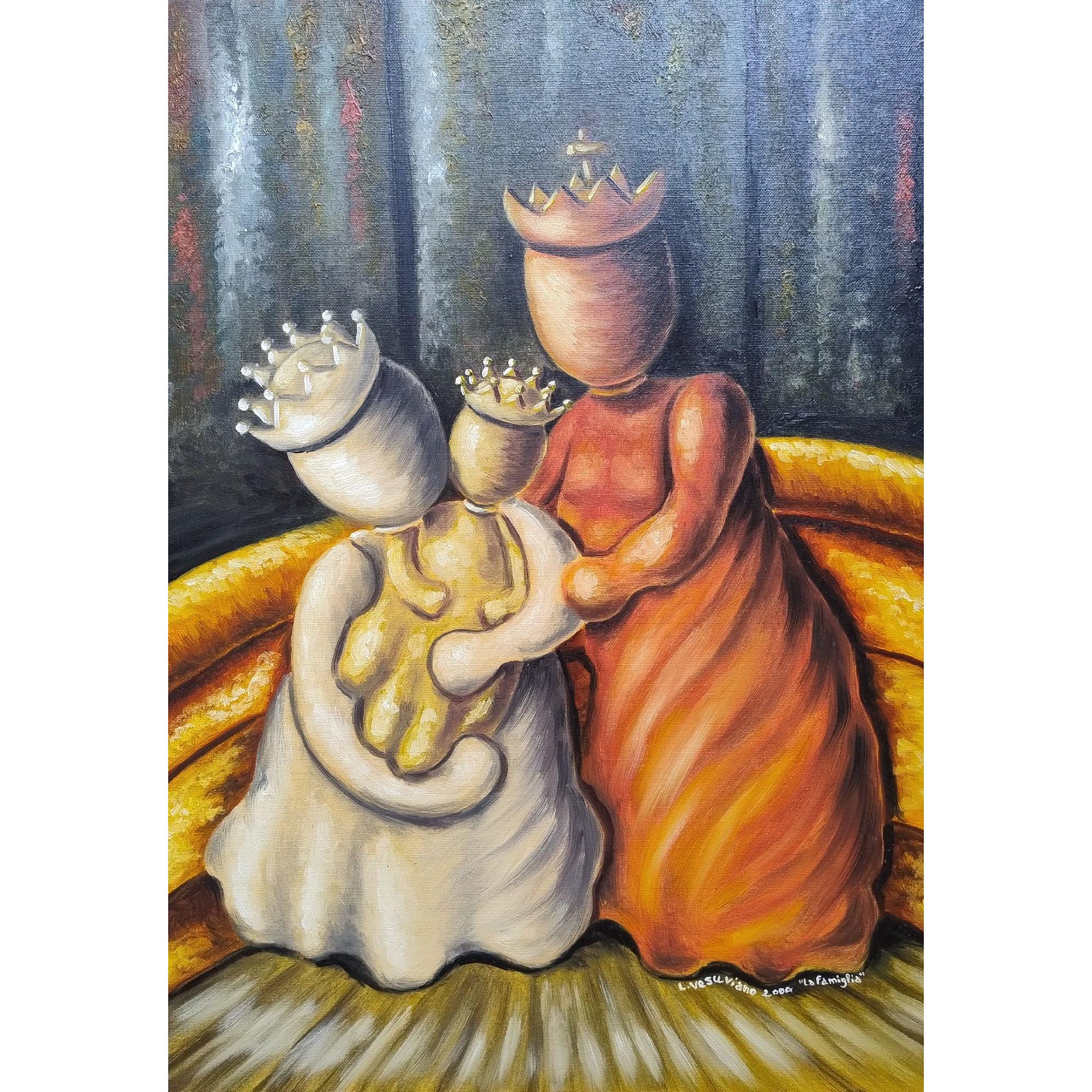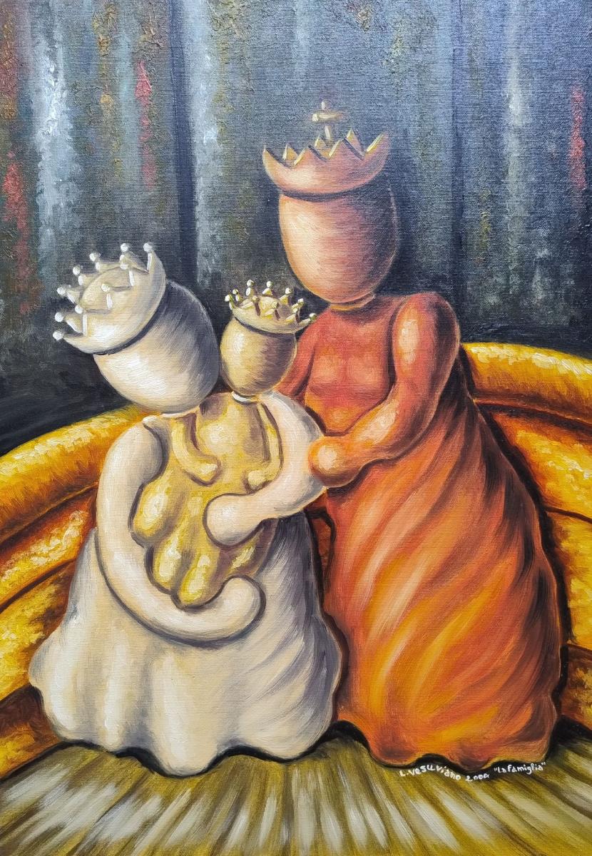 La Famiglia rappresenta un' altro mio dipinto a tema scacchistico ambientato all' interno di casa come a immortalare l' amore
