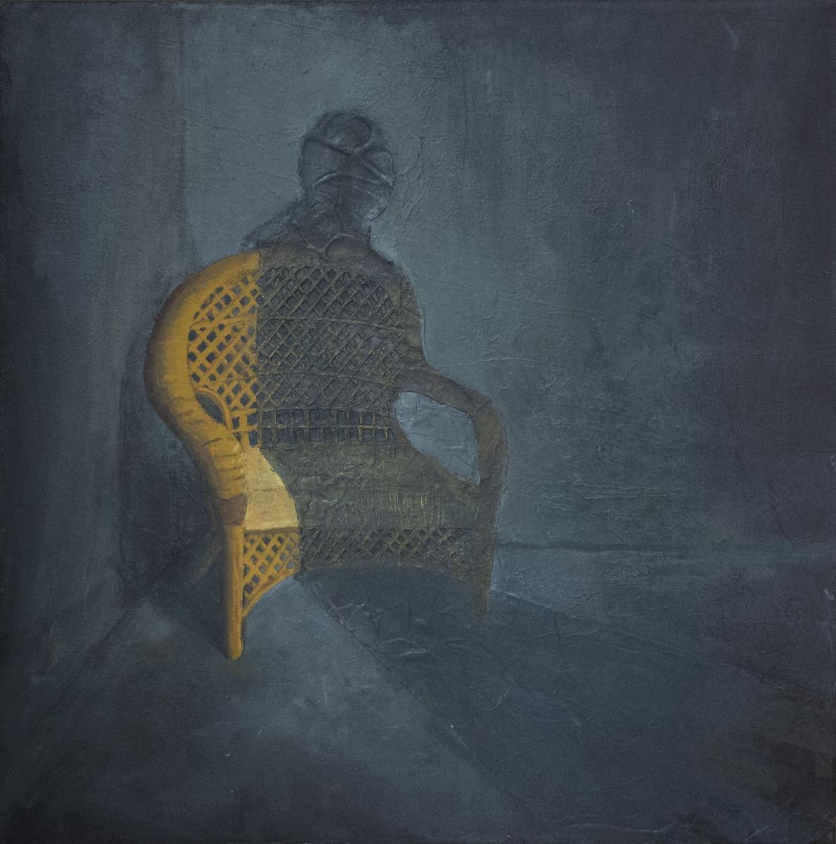 L’opera nasce dal tema della fuga intensa come fuga mentale: un tentativo disperato di allontanarsi dal dolore, di alleggerire una mente troppo carica per andare avanti. È la ricerca di una lobotomia simbolica, di un oblio che non arriva mai, perché il passato ritorna se non affrontato. La sedia lasciata in un angolo diventa allora metafora di questa fuga da sé stessi, un’esistenza sospesa in una stanza chiusa, dove l’ombra rimane come traccia malinconica di chi c’era.
