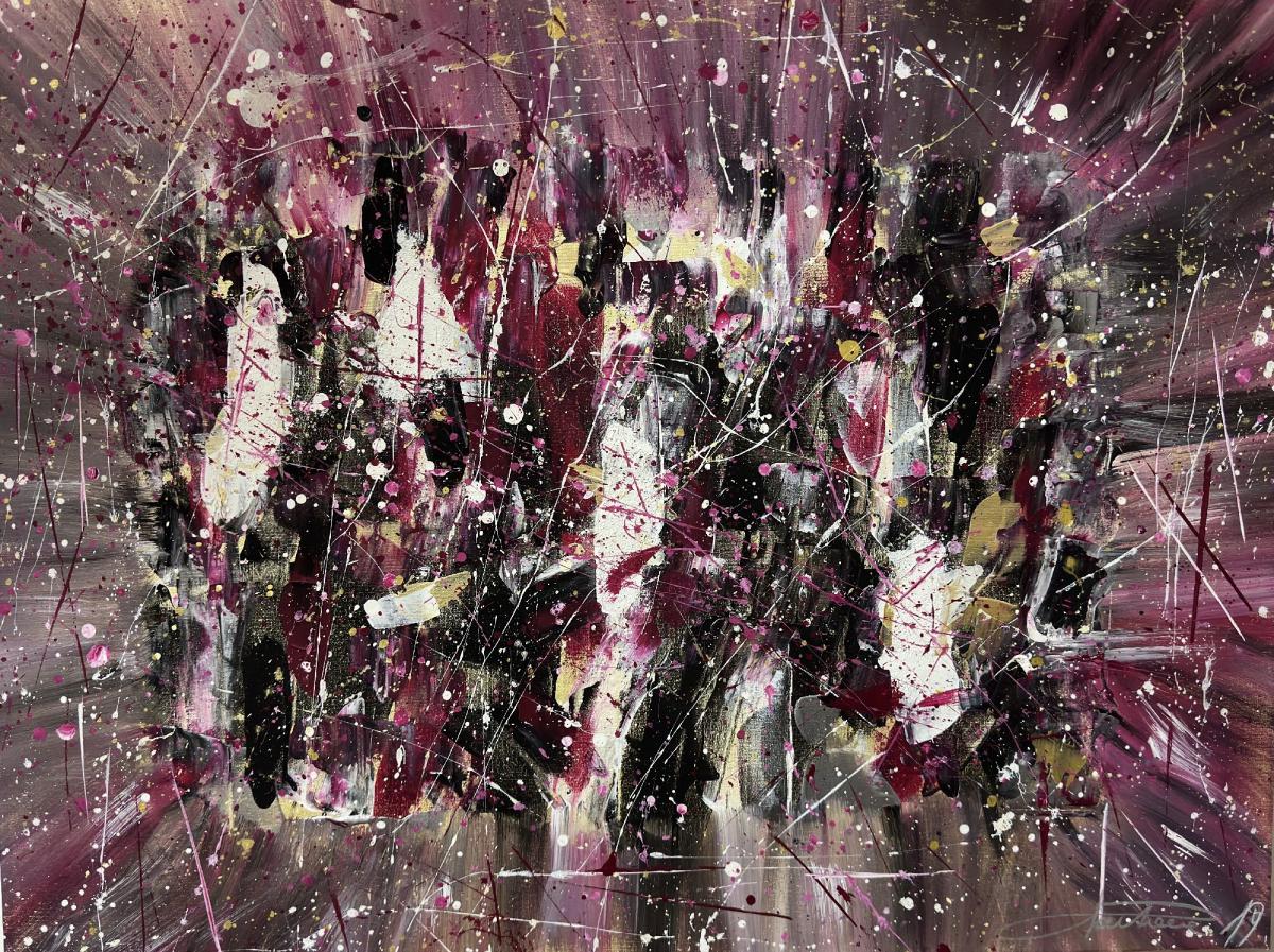 SI TRATTADI UN’OPERA ARTIGIANALE PRODOTTA IN UNICO ESEMPLARE REALIZZATA SU TELA CONFONDO SFUMATO CON UNA SERIE DI PASSAGGI DI COLORI IMPRESSI IN MANIERAINCONTROLLATA CON SPATOLA E PENNELLO. IN EVIDENZA I COLORI BIANCO ROSA NERORECA SUL RETRO IL CERTIFICATO DI ORIGINALITA’ OPERA FIRMATA FRONTE RETRODALL’ESECUTORE