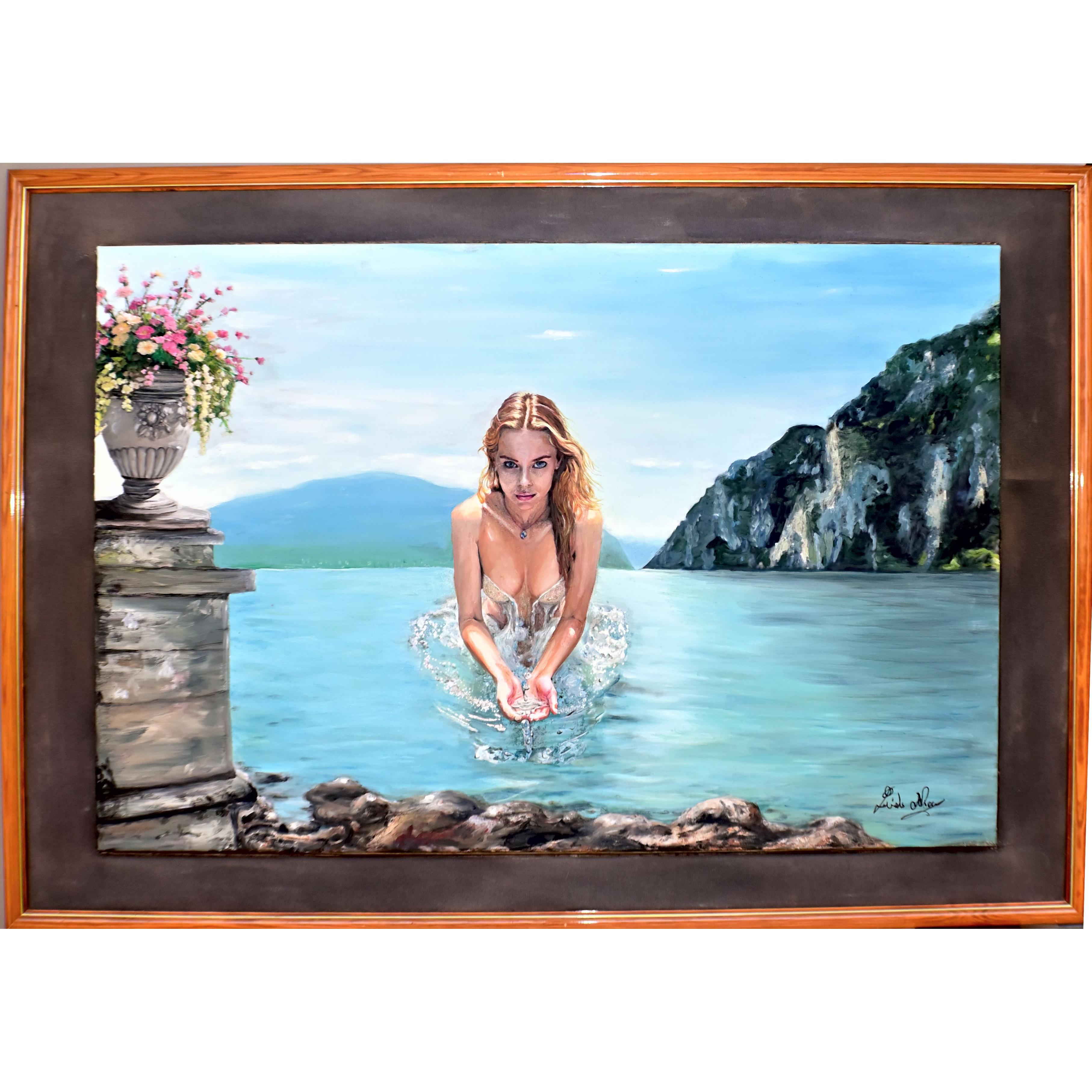 Inun'atmosfera sospesa e contemplativa, ho voluto creare un’immagine cherappresenta la sacralità dell’acqua come principio originario. La figurafemminile, immersa nella quiete del paesaggio, diventa emblema di una maternitàuniversale: una presenza che crea la vita, nutre e rigenera. Il gesto delporgere l’acqua – semplice e rituale –dove l’elemento liquido è veicolo dinutrizione e crescita.
