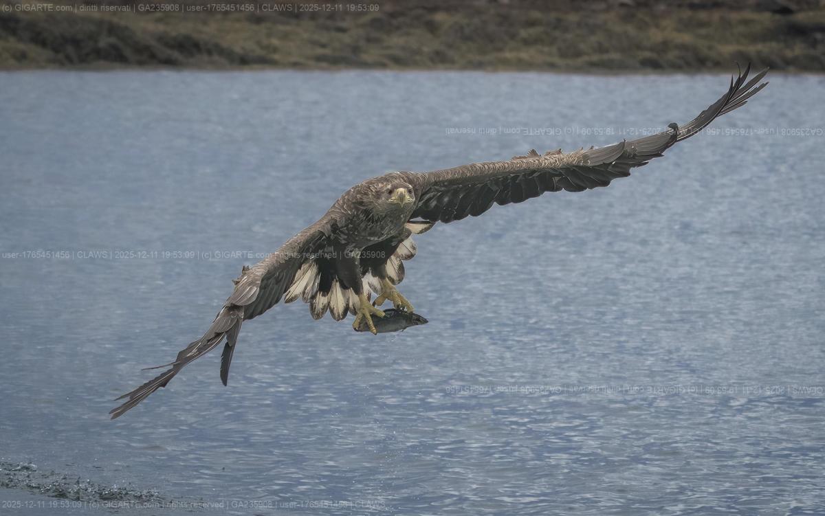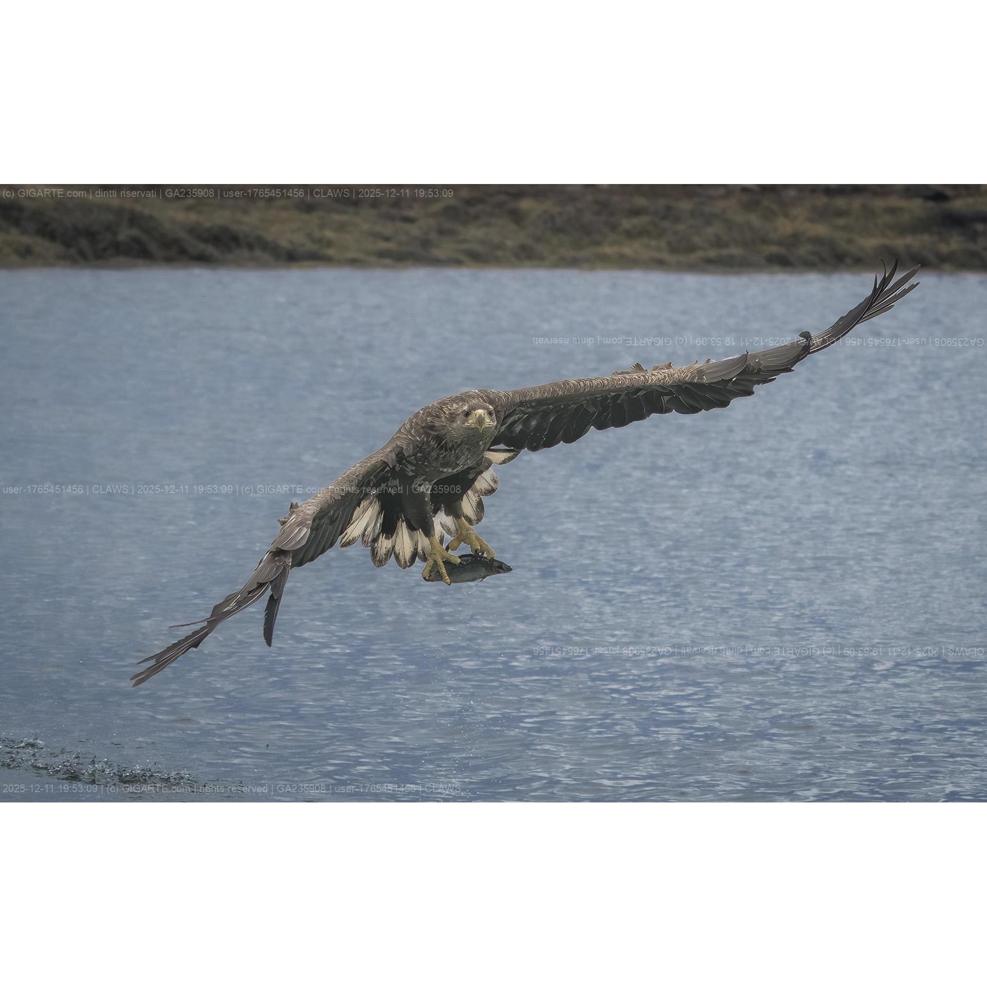 Aquila di mare mentre pesca