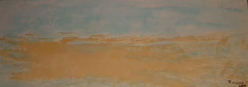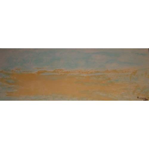 La spiaggia e il mare sembrano fondersi, senza confini netti: proprio come può accadere tra il bisogno di prendersi cura e il desiderio di essere accolta. È un’opera che parla di un respiro più ampio, di un ritorno a se stessi attraverso gli elementi naturali. L’orizzonte basso, quasi sussurrato, lascia spazio a un cielo che si apre, simbolo di un’aspirazione sottile alla libertà, ma senza fuga.