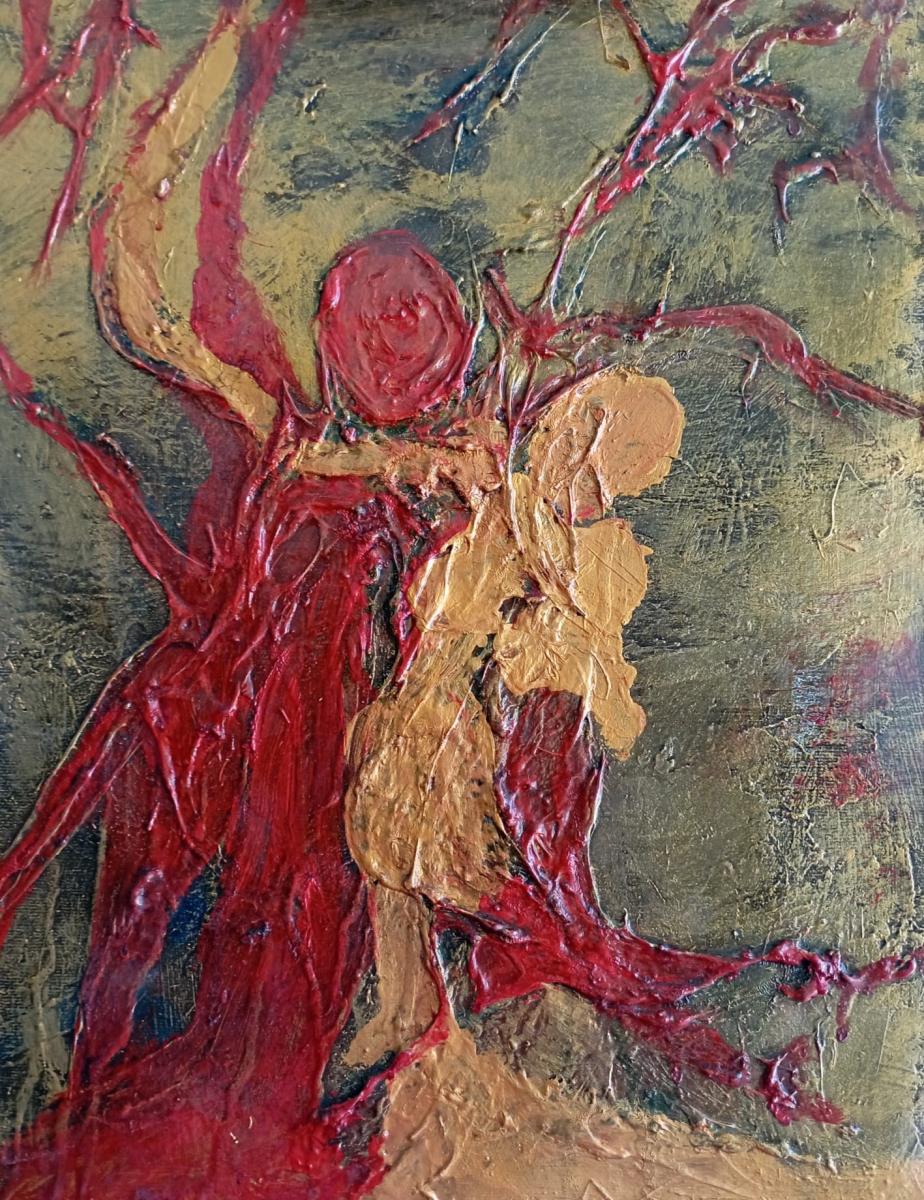 Le figure sembrano fondersi con l’albero, come sel’abbraccio tra due corpi nascesse direttamente dalla terra.