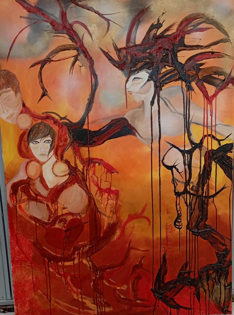 Quando la vita si trasforma in un inferno, l’arte diventarifugio, specchio e grido. L’artista non racconta solo il dolore, loattraversa, lo plasma, lo restituisce con forme distorte, colori intensi,materia viva. Il gesto pittorico diventa atto di sopravvivenza, e la tela unasoglia tra il mondo interiore e quello reale.