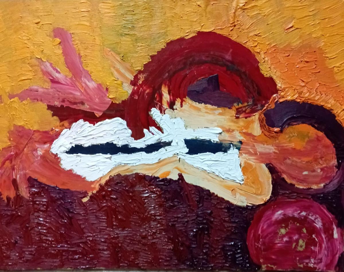 La mia superficie è un campo di tensioni, dove nulla èstabile. Le forme si piegano, si sciolgono, si trasformano in qualcosa che nonè mai definitivo. Sono il riflesso di un pensiero che non trova pace, di unosguardo che insiste oltre ciò che è visibile. Dentro di me convivono desiderioe inquietudine, come se ogni colore fosse una domanda senza risposta.