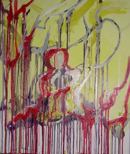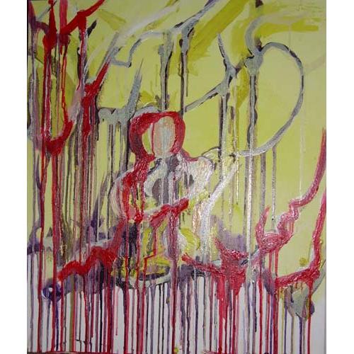 L’amore tra due compagni che creano una famiglia nonostantetutto Questo quadro è un verbale. Il verbale della nostra guerra e della nostrapace. Vedi queste due figure al centro? Siamo noi. Io e te. Rossi, perché siamovivi, siamo sangue, siamo carne che ha scelto di restare anche quando bruciava.Non abbiamo volto perché l’amore che sopravvive alle ferite non ha più bisognodi presentarsi. Si riconosce dalle cicatrici. Tutto cola. Il rosso, il giallo,il nero, l’argento. Perché una famiglia vera non è mai pulita. È sgocciolaturedi rabbia, di perdono, di notti insonni, di pianti nascosti in bagno. Le lineeverticali sono sbarre ma sono anche pioggia. Siamo stati in prigione insieme eci siamo bagnati insieme. E abbiamo deciso che fuori, da soli, faceva piùfreddo.I fili d’argento sono le ferite. Sono taglienti, ti tagliano se letocchi male. Ma tengono insieme i pezzi. Senza quelle ferite noi due nonstaremmo in piedi. Ci hanno cucito, anche se con punti storti. Il giallo dietroè l’ostinazione. È quel colore acido della speranza che non vuole morireneanche quando tutto ti dice di mollarla.Ci abbracciamo, ma guarda come: senzagrazia. Di spigolo. Perché l’amore che crea una famiglia “nonostante tutto” nonè quello dei film. È un abbraccio tra due soldati pieni di tagli che si diconose cadi tu cado anch’io, quindi non cadere.L’ho chiamata Amori e ferite perchénon puoi separarli. Se ami, ti ferisci. Se ti ferisci e resti, hai amatodavvero. La famiglia non nasce quando tutto va bene. Nasce quando va tuttostorto e tu scegli di non scappare. Quando pulisci il sangue tuo e quellodell’altro e il giorno dopo rifai colazione insieme.Questo quadro gronda. Èdisordinato, è violento, è imperfetto. Come noi. Come la nostra casa. Come ifigli che magari arrivano in mezzo a questo casino e lo chiamano“normalità”.Nonostante tutto. Appunto. Nonostante tutto sono le due parole piùd’amore che conosco.