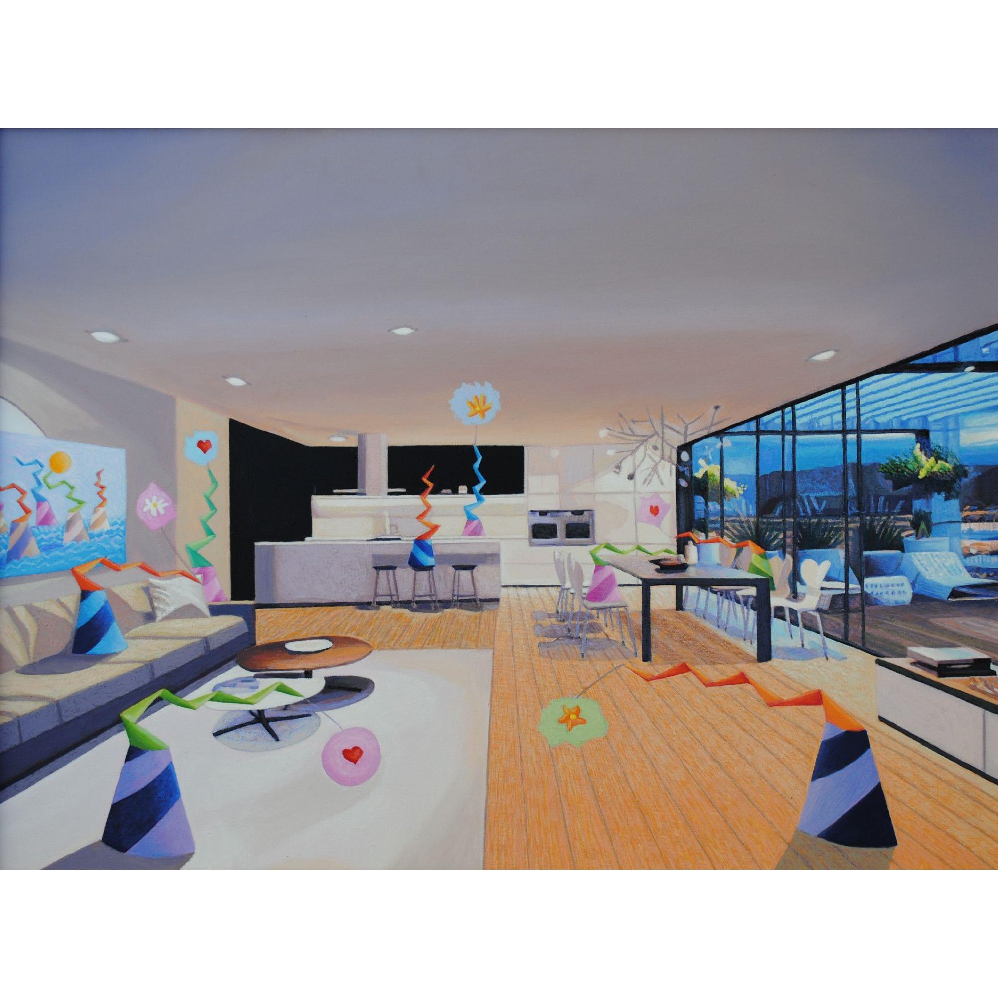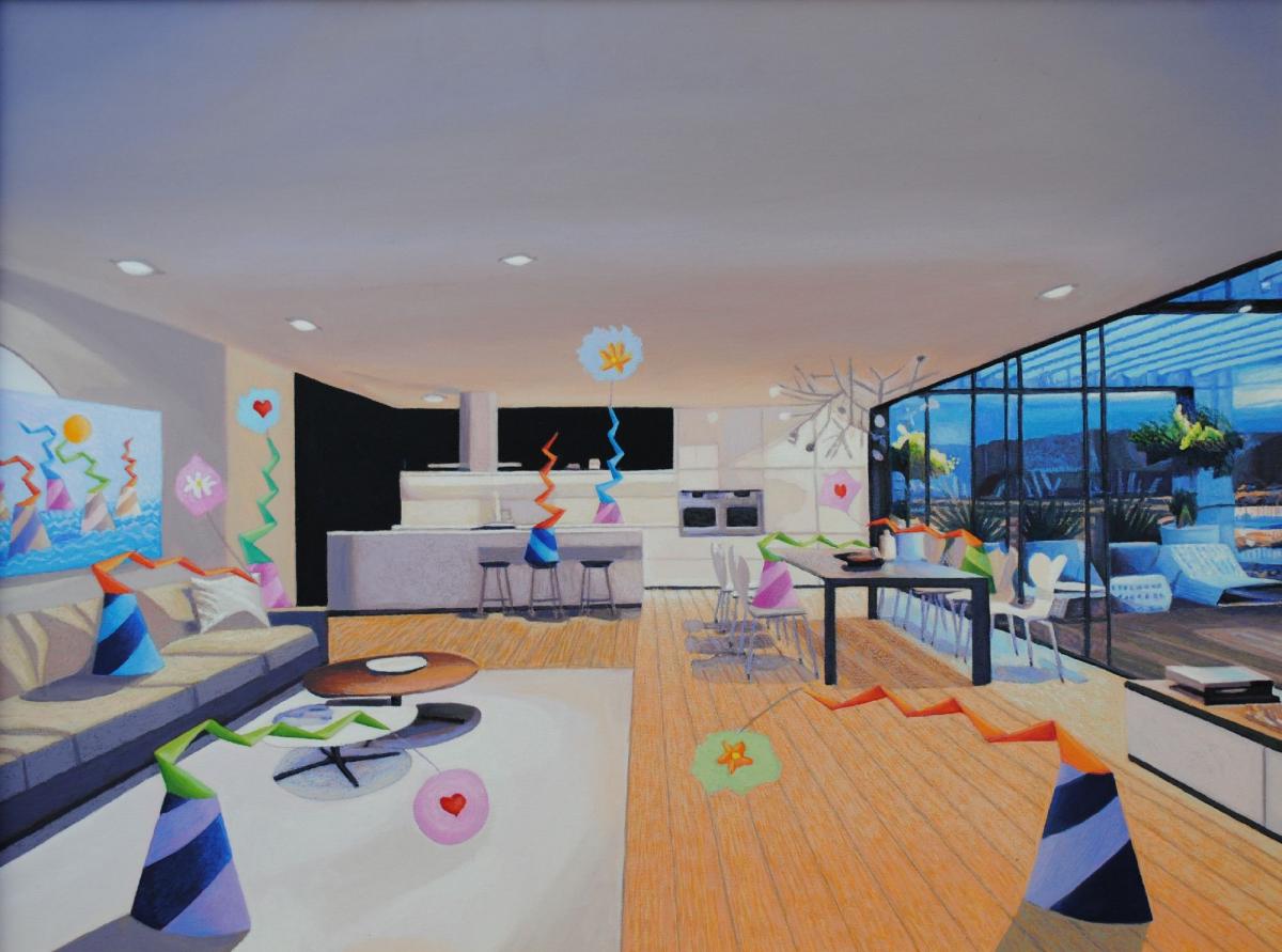 L'opera rappresenta delle forme simboliche in un appartamento elegante e moderno, che trascorrono la serata con le loro "forme pensiero "positive. Dal terrazzo s'intravede un paesaggio notturno mozzafiato.