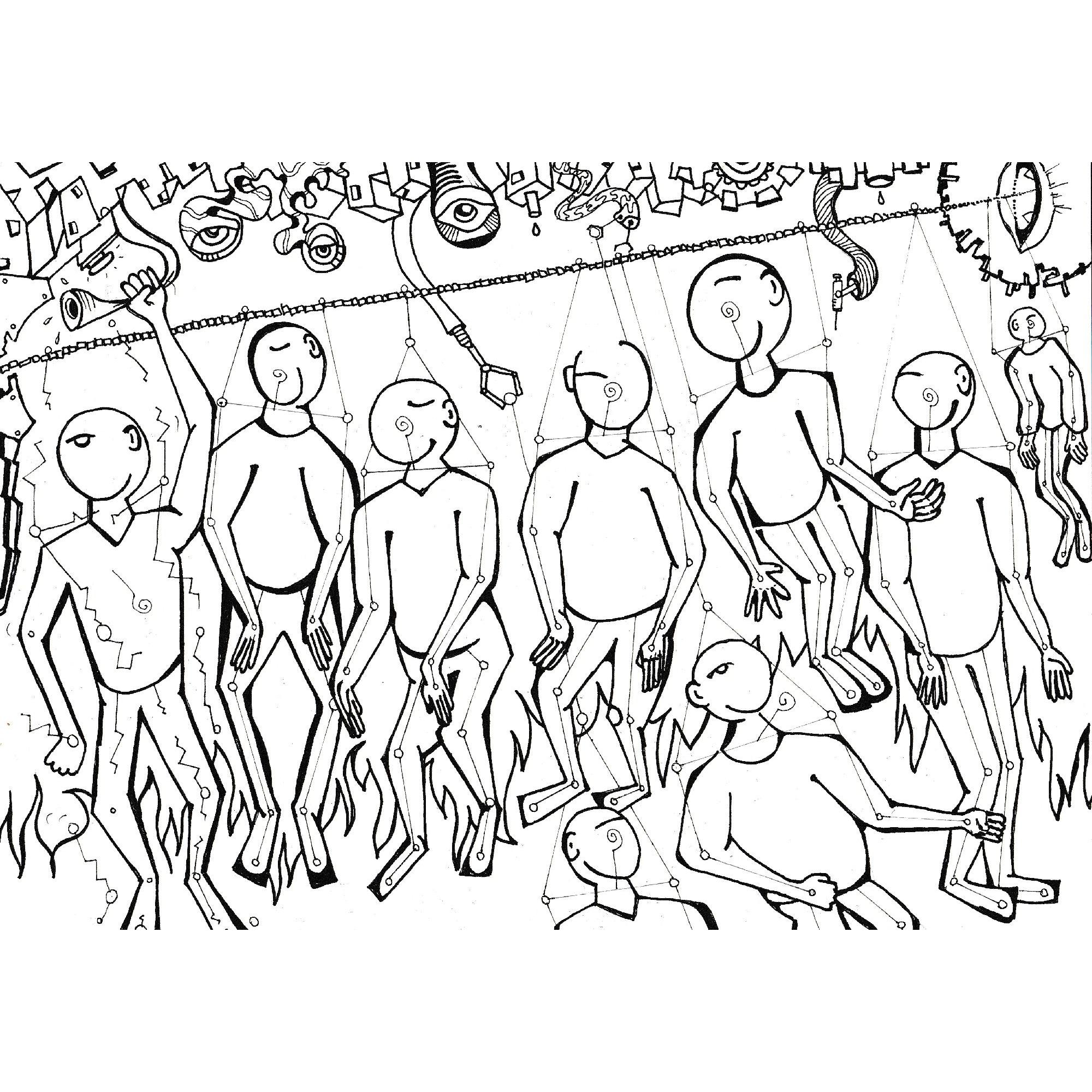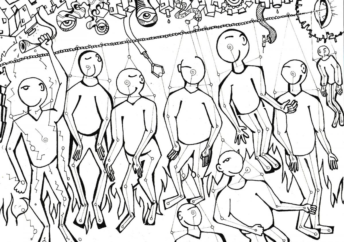 La dottrina sta realizzando il suo obbiettivo, quello di uniformarci, di schiavizzarci, di masticarci e risputarci mezzi morti, ma sempre obbedienti e produttivi. Le macchine che ci fanno divertire e che sembra che ci aiutino a vivere meglio sono in realtà la nostra condanna, si trasformeranno da utilizzate ad utilizzarci, non avremo più modo di Essere e di Esistere con dignità è questo che vogliono toglierci per farci arrabbiare e combattere tra noi, giudicare il prossimo senza sapere chi c’è nascosto dietro al racconto della favola, una catena di montaggio invisibile, sottile ma inesorabile, ad ogni passaggio un colpo duro alla nostra libertà di pensare, di movimento, di sapere chi siamo in verità ..Il ribelle apre gli occhi e vede tutto il meccanismo, si desta finalmente dal torpore e si ribella, denuncia ma poi cade nel fuoco del giudizio, della critica, del cospiratore. Il congegno è ben studiato e ti divora senza fretta, ti logora piano piano senza che te ne accorga, ti fa sembrare che tutto è normale per tutti mentre c’è chi si approfitta e gozzoviglia nell’ombra. I burattini più in vista sono ben pagati per costruire questo meccanismo con le istruzioni di mani oscure che progettano. Decisioni prese ad un tavolo fanno vittime innocenti sul campo, ma ci pensate? Se rompessimo queste catene invisibili ma strette a toglierci il respiro?
