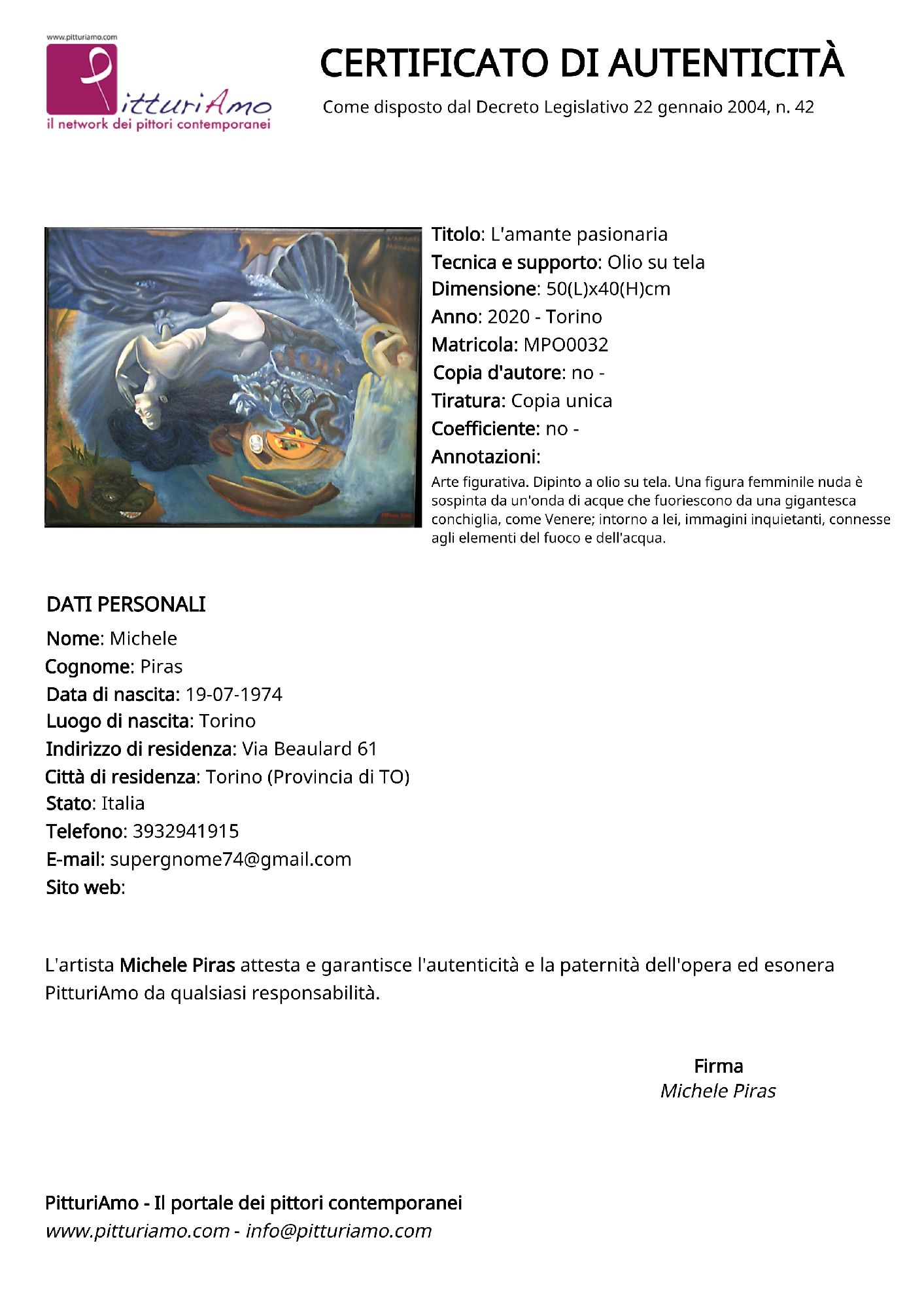 Vuoi chiedere maggiori informazioni sull'opera? Vuoi conoscere il prezzo o fare una proposta di acquisto? Lasciami un messaggio, risponderò al più presto