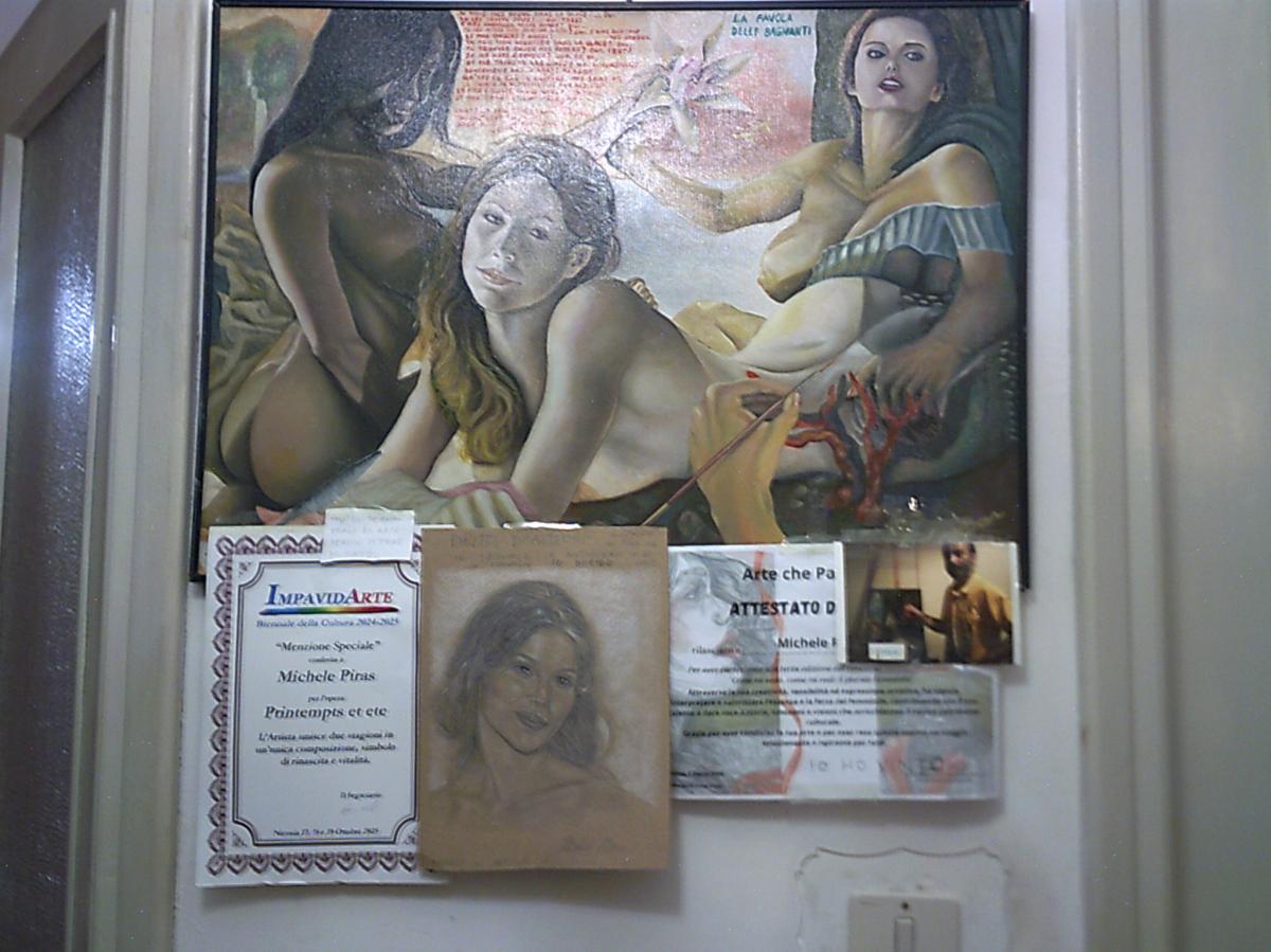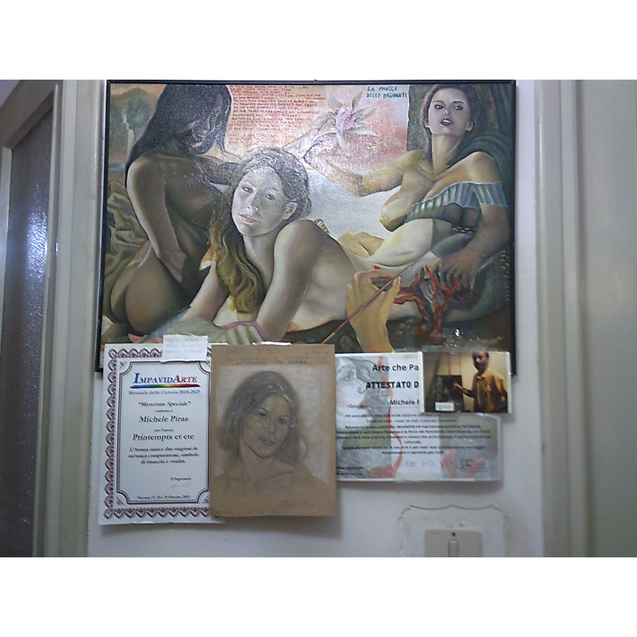 - Tecnica: olio, matite, stampe, fotografia